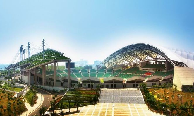 中國風景園林網(wǎng)訊 大學城體育場館位于大學城中心區(qū),包括一個大型體育場和一個田徑訓練場,其中體育場占地9.7萬平方米,可容納5萬觀眾,規(guī)模僅次于天河體育中心和奧林匹克體育中心,成為廣州第三大體育場,可用于大型活動開幕式、國際級田徑賽場和足球比賽賽場。 大學城中心區(qū)體育場位于大學城中心湖畔,中心生態(tài)公園的北端,北臨大學城體育場館內環(huán)路,南向中心湖,三面環(huán)山,屋頂采用“綠白”組合,如同一片白云在山間和水上浮動。中心區(qū)體育場包括四百米的標準足球場和四百米跑道的田徑訓練場,其中體育場占地9.7萬平方米,計劃投資4億元,可容納4萬觀眾,規(guī)模僅次于天河體育中心和奧林匹克體育中心,建成后將成為廣州第三大體育場,可用于大型活動開幕式、閉幕式、國際級田徑、足球比賽主賽場。 “八館”為華南理工大學、廣東藥學院、廣州中醫(yī)藥大學、廣東外語外貿(mào)大學、中山大學、華南師范大學、廣東工業(yè)大學、廣州大學體育館。各高校體育場館根據(jù)功能需要呈現(xiàn)出不同的設計特點:華南理工大學體育館是活力與激情的完美結合,在建筑設計上,四個扭殼組合而成的反曲屋面呈現(xiàn)出流暢的曲線造型和蓬勃向上的生命力,將作為大型運動會的乒乓球比賽館。廣東工業(yè)大學體育館為正方形平面,外形完整,簡潔、樸素,與風雨操場可作為大型運動會籃球的主要賽場。廣州中醫(yī)藥大學體育館采用圓形平面設計,將作為大型運動會的武術比賽場館,平時也可作為籃球場、手球場、羽毛球場和排球場等。廣東藥學院體育館主館屋頂?shù)脑煨筒捎酶挥趧痈械恼勖嫘问,從東西兩旁看去,展現(xiàn)出一條富于韻律的折線,可作為大型運動會健美操比賽主館。華南師范大學體育館、游泳館建筑造型宛如綠葉,飄落于大地之上,為學子們遮風擋雨,樹葉的形態(tài)設計充滿動感,體現(xiàn)了“更高、更快、更強”的奧林匹克精神,樹葉莖干部位處理成采光天窗,大學城體育場館有利于比賽訓練的使用,屋面線條肌理蘊含仿生學原理,表達了可持續(xù)發(fā)展的設計理念。廣州大學體育館造型設計新穎簡潔,屋頂為弧形網(wǎng)架結構,外墻面為素混土,與淡藍色玻璃窗相襯,樸實大方,可作為大型運動會籃球比賽主館。廣東外語外貿(mào)大學體育館建筑形象活潑,流暢之中不乏莊重典雅,緊湊簡樸中不乏飛揚奮進之勢,可作為大運會排球主館。中山大學體育館將作為大型運動會排球比賽主館,建筑風格以端莊穩(wěn)重為主,充分彰顯中山大學悠久的歷史文化和嚴謹?shù)闹螌W風范。 此次大學城體育場館的建設將嚴格控制投資,方案全部實行限額設計招標,“八館一場”的總投資控制在12億元人民幣以內。“八館一場”統(tǒng)一規(guī)劃設計,按不同的比賽功能科學分工建設,各體育場館的設計既強調功能需要,又注重生態(tài)和諧以及同周邊環(huán)境和建筑的協(xié)調。