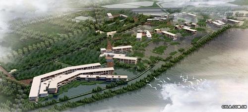 位于現狀牟山湖南側水庫周邊,依托現狀優質的果林、水體、山體等自然景觀資源,建設生態療養區,包括養生別墅、療養健身中心等設施。建筑設計采用傳統建筑形式,與自然山林水塘融為一體,突出野趣。