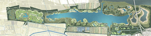 崇明北湖地區(qū)規(guī)劃和崇啟通道環(huán)境景觀規(guī)劃設(shè)計(jì)被授予第二屆《商務(wù)周刊》/《建筑實(shí)錄》中國(guó)區(qū)最佳綠色設(shè)計(jì)獎(jiǎng)。兩個(gè)項(xiàng)目都通過(guò)具有生態(tài)敏感性的創(chuàng)新設(shè)計(jì)方案,為崇明島——上海北邊“最后的天堂”——尋求開(kāi)發(fā)與保護(hù)之間的最佳平衡。 崇明北湖地區(qū)總體規(guī)劃范圍100.7平方公里,核心設(shè)計(jì)范圍34.5平方公里。基地四周環(huán)繞著農(nóng)田、蘆葦灘,以及7.7平方公里的咸水湖北湖?傮w規(guī)劃目標(biāo)是保證崇明珍貴的生態(tài)系統(tǒng)的可持續(xù)發(fā)展,維持重要自然資源北湖的水域面積和水質(zhì)。經(jīng)過(guò)對(duì)生態(tài)系統(tǒng)現(xiàn)狀的綜合分析,制定嚴(yán)謹(jǐn)?shù)木坝^框架,包括14個(gè)重要分區(qū)以及每個(gè)分區(qū)獨(dú)有的維護(hù)策略,為北湖地區(qū)未來(lái)的娛樂(lè)休閑開(kāi)發(fā)奠定了基礎(chǔ)。