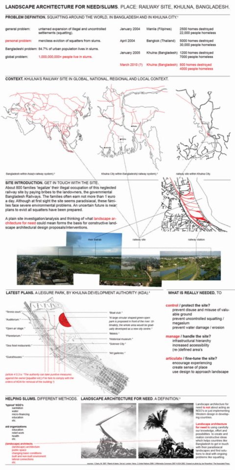 荷蘭瓦赫寧根大學(MUR)的托馬斯,戴格納(Tomas Degenaaer的題為“需要與貧民窟的風景園林(Landscape Architecture for Need/Slumns)”的設計方案獲得二等獎