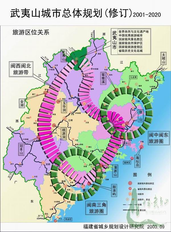 光看看圖就感覺這個規劃做的不好。武夷山地處旅游資源如此密集的地域,生態、人性應是該規劃的重點。很遺憾,沒有看到這方面在空間上的表達。