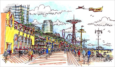 紐約市投入25億美元對位于布魯克林區南部的康尼島進行重建,項目將康尼島重新劃分為19個區,這個27英畝的土地將設計為一個全年開放的娛樂區,包括室內和室外娛樂區。除了擴大游樂園外,紐約市政府還計劃建造4,500套全新住房和800間酒店客房,周邊配套的零售業也會隨之而起。市規劃主任Amanda Burden 評價這個規劃為一個“非常好的事情”,因為“它將為康尼島居民帶來工作機會和可以支付得起的房子。” 項目規劃的亮點為限制在27層樓高的建筑、IMAX劇院和一條連接康尼島三大標志性建筑(有著88年歷史的摩天輪、Parachute Jump和Cyclone)的Wonder Wheel Way散步道。 整個項目已規劃五年,是300多個會議探討的結果。項目批準預計要花費七個月的時間。