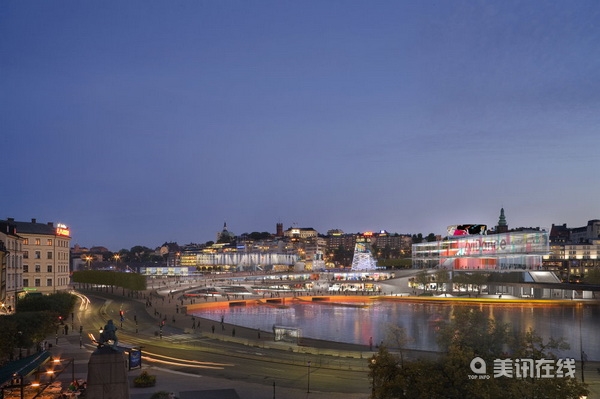 作品二 Jean Nouvel的設計由六個步驟構成,包括一個舞蹈中心、巴士終點站、綠色地帶公園。這個規劃是基于Slussen曾經是斯德哥爾摩歷史上重要的貿易和會議中心這一歷史特征而定位的。 Foster + Partners的設計以一種橋的概念提出來,優先考慮人行道和腳踏車道。將Sådermalm 和Gamla Stan兩個社區“縫合”在一起, Foster+Partners的負責人說道:“我們的設計是尋求一種解決Slussen現有的問題的方案。它將使得Sådermalm和Gamla Stan強有力地連接在一起,成為斯德哥爾摩又一人行地帶。” Slussen改造規劃將在2010年公布誰將最終負責這一項目的設計,并計劃于2012年開始動工,2018年竣工。