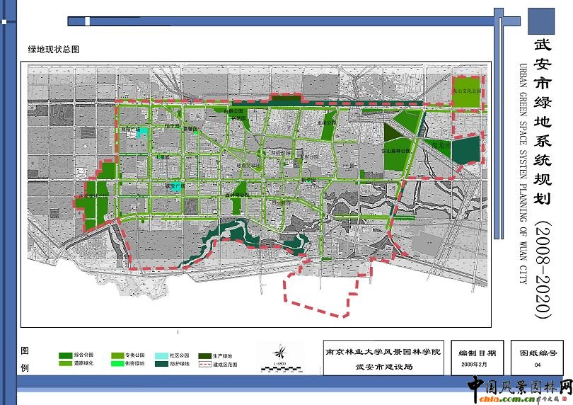 主編單位:南京林業大學風景園林學院 委托單位: 武安市建設局 規劃編制完成時間: 2009年3月 項目負責人: 王 浩 教授 博士生導師 項目組成員: 黃 靜 講 師 博士研究生 趙 巖 講 師 博士研究生 劉 源 講 師 博士研究生 楊藝紅 講 師 碩士 袁悅鳴 碩士研究生 劉曉光 碩士研究生 姚 徐 碩士研究生 段 曉 碩士研究生 武安市參編人員: 白玉勤、白俊章、侯永軍、顧秀靜、郝現強、梁 萬 前 言 為加快打造山水園林城市,合理安排城市各類園林綠地建設和城市大環境綠化的空間布局,達到保護和改善城市生態環境、優化城市人居環境、改善投資環境、促進城市可持續發展的目的,武安市建設局于2008年10月25日委托南京林業大學風景園林學院進行《武安市城市綠地系統規劃(2008-2020)》的修編工作。 項目組于2008年10月底開始開展現場踏勘、基礎資料收集等基礎性工作,完成了主要現狀資料的收集與匯總。在《武安市城市總體規劃(2003-2020)》的指導下,于11月底形成初步方案,同時向武安市政府、建設局進行匯報,同時向當地規劃、林業、土地、環保、交通、水利等相關部門征求意見。規劃組在綜合聽取各方面意見和建議的基礎上,對規劃方案進行了認真的深入和完善的修改,將修改完善后的綜合方案作為武安市城市綠地系統規劃的正式方案。 本次規劃成果包括《基礎資料匯編》、《說明書》、《文本.圖則》,其中基礎資料匯編是城市綠地發展基礎條件與現狀的匯總;規劃說明書是對規劃內容的詳細闡述,與規劃文本具有同等效力;規劃文本與圖則是本規劃主要內容的歸納和詳細反映,是武安市綠地發展的綱領性文件。 本規劃編制過程中得到武安市政府各級領導、建設局及相關領導的大力支持,各有關部門及時提供大量基礎資料,建設局精心組織、協助工作,在此一并表示衷心感謝。 《武安市城市綠地系統規劃(2008-2020)》編寫組 2009年2月 目 錄 第一章 規 劃 總 則 5 第二章 規劃目標與指標 9 第三章 市域大環境生態綠地系統規劃 11 第四章 城市規劃區綠地系統規劃 14 第五章 規劃建成區綠地系統規劃布局結構 16 第六章 規劃建成區綠地分類規劃 19 第七章 城市綠地系統景觀風貌規劃 30 第八章 植物規劃 36 第九章 生物多樣性保護與建設規劃 45 第十章 古樹名木與文物古跡保護 50 第十一章 近期建設規劃 51 第十二章 避震減災綠地系統規劃 58 第十三章 規劃實施措施 62 第十四章 附則 63 ![]() ![]() ![]() ![]() ![]() ![]()