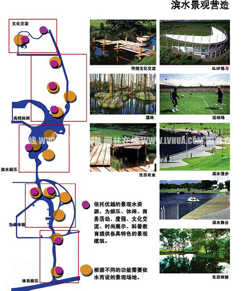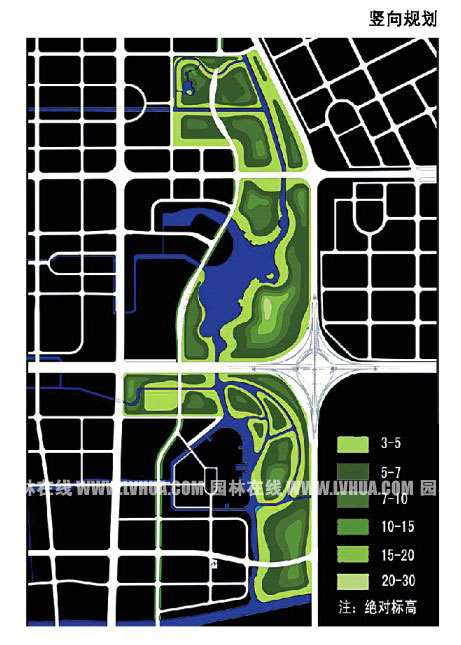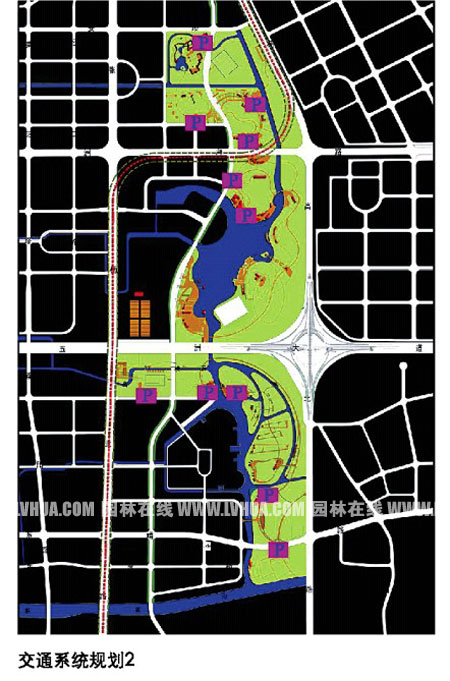 七、公園容量測算 (一)依據 森蘭綠地與世紀公園有多方面可比性;公園游客基本以半日游和一日游為主,日游人量比瞬時容量大得多。因此較合理的方法是用瞬時容量來推算公園設施規模。《公園設計規范》按面積算出的“物理容量”即瞬時容量,比實際偏高.應按經驗系數折合。(參考數據:06年春節黃金周第一天.世紀公園接待游客0.6萬人次.07年五一黃金周第一天.世紀公園 接待游客2萬人次) (二)容量測算 總容量為39 768人(最大瞬時容量),結合公園區位交通現狀取經驗值80%.得出容量為3萬人。該數據將成為公園設計規模估算(停車位等)的依據之一。 八、交通系統規劃 (一)道路分級 一級道路:5—6米,主要為防汛通道、車行道; 二級道路:3—4米,主要為服務建筑專用車道、自行車道、人行道; 三級道路:,小于 3米.主要為人行游步道。 (二)出入口規劃 原則: 1.結合周邊道路等級和人流量,合理設置出入口及其等級,必要時人車分流。 2.基于北、中、南三地塊的聯系考慮,設置出入口增強交通和景觀體驗連續性。主要出入口:滿足機動車、人行、兼顧機動車停車場次要出入口:滿足非機動車.人行、兼顧非機動車停車場。 (三)停車位測算 依據相關標準.滿足公園內部建筑基本需要的車位約550個,以此為停車位最小基數。 全國旅游區客運交通方式中,比例為:大客車55%,中客車35%,小客車10%;去往城市公園的交通方式比例可參考上述數據。據有關調查.上海近年選擇私家車出行的機率約5%.參照公園容量得出小汽車停車位1 500個。 (不含游客巴士,因已集中設置)從世紀公園管理人員處了解到其共有小汽車停車位600個上下.比較分析后.證實本案停車位數的基本合理性。(公園內部建筑所需停車位采取地面形式。其余建議地下安排) 九、水系規劃 (一)水系統構建 根據控規,基地三區塊由高南河貫穿始終.分別與中心區湖泊、南區湖泊有重合部分。高南河與基地內其他河道藍線已定.本次規劃僅可對湖泊藍線進行變動。在湖泊藍線劃定時,既要滿足控規所定湖泊水面大小,又應遵照藍線管理規定,與其它河道相協調,營造統一的水系統。 (二)濱水景觀營造 利用水體不同的大小形狀、深淺、寬窄.模擬不同的地理環境,既豐富了水體景觀,又為濱水活動的規劃創造了多樣的環境。 依托優越的景觀水資源.為娛樂、休閑、商務活動、度假、文化交流、時尚展示、科普教育提供各具特色的景觀建筑.根據不同的功能需要依水而設的景觀場地。 十、綠化系統規劃 (一)整體風格 以自然植物生態群落為主體,近城市化地區.可穿插規則式種植方式,營造春華秋實的觀賞性景觀;非城市化地區,形成以保護性蔬菜、果林園、生產苗木基地以及都市型農業等綠色產業為主的區域。 (二)高壓走廊景觀弱化處理 高壓電線走廊下切忌建造房屋等建筑物.種植植物高度不超過6米,保障電力設施的安全防護。通過果園、花圃、草圃、苗圃、蔬菜等種植形式弱化高壓電網設施,形成以綠色植物.農作物為主的觀光園藝、休閑農業活動場所。 (三)地形營造 利用原有地形,通過內部土方平衡,局部改造地形,形成有特色的大地景觀,創造出宜人的小氣候,有效改善城市整體生態環境。 (四)苗木工程移植建議 1.按照建設時序,為苗木移植和使用進行最為合理的規劃,按苗木質量,特性、樹種進行優化配置.基本避免2次移植。首期開發區內,調查基地內需移植的現狀苗木,施工時根據現場苗木質量進行。 優化配置: 質量較高的用于重要景觀處:如湖濱景觀綠化。 質量中等的用于一般景觀處:如蘭谷路道路綠化及該區塊的農民動遷安置小區內的綠化苗木。 量較差、但可存活的用于高壓走廊沿線等背景林處。 質量很差且不易存活的不予以使用。 對不涉及首期開發區塊內的苗木需進行合理養護.適當抽稀,以確保苗木的正常生長.以備后用。抽出的苗木,在近期也可使用于高壓走廊沿線的背景林處。 2.根據景觀要求優化配置,發揮各常綠、落葉、觀花觀果,色葉苗木的景觀作用。 3.根據植物群落等生態要求合理布局,滿足生物多樣性要求。 4.基地內高壓走廊帶較寬較長.廊帶內苗木需滿足高度要求.不宜過高,確保安全。 十一、建筑規劃 (一)原則及目標 以生態建筑為主導,因地制宜.注重遮陽和自然通風,降低空調等能源消耗,降低環境和建筑污染.保護自然生態環境,創造健康、舒適的室內外環境。 (二)建筑布局處理 根據公園容量和游客量預測,將主要服務設施點集中設置在人流密集的主要區域,構建濱水休閑服務區.設置高檔風味餐廳、咖啡館.茶室和酒吧等。 濱水處以小體量的主題咖啡館.茶室等為主,除考慮便于管理及經營外.還應考慮過多人流對自然生態景觀的干擾。 (三)古建筑保護與利用 修復寶蓮庵建筑,修舊如舊.利用牡丹園內遷入民宅作地方文化展示場所.適當允許機動交通進入.開展民間手工藝展示活動。在臨近區域新建少量仿古建筑,風貌與原有古建協調.作為展示地方戲曲文化的載體和場所。嚴禁粗制濫造,避免新建假古董。 十二、豎向規劃 (一)土方工程建議 基本原則:盡量在基地內部消化。按景觀要求,根據建設時序,對資源進行合理使用。 (二)建議堆土區域 道路工程優先:水體開挖的土方宜首先用于同時期啟動的道路景觀工程中——楊高北路高壓沿線及道路綠化。 景觀要求滿足:蘭谷路沿線景觀需求較高,對土高度