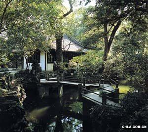 一般的江南文人私家園林,往往園中廳堂館舍較多,而綺園的布局構(gòu)思卻不落窠臼。全園的亭臺(tái)榭軒只有四處。一是西南入口處的主廳潭影軒,較寬大敞亮,可容近百人。二是北山頂?shù)囊涝葡恚尤珗@最高,又名望海亭。再是北山腳下、東池邊的滴翠享,與東堤罨畫橋及其北堍的合抱樟樹隔池相映,又與周圍山水翠木和諧配合,組成一片旖旎的風(fēng)光。電視劇《紅樓夢(mèng)》寶釵撲蝶一戲就在這一帶拍攝。最后就是大池西北的水閣小筑。憩歇閣中,憑欄眺望,全園景色盡收眼底。