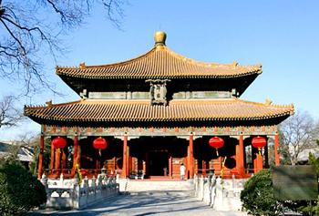 國子監的中心建筑是辟雍,為北京“六大宮殿”之一。國子監辟雍建于清乾隆四十九年(公元1784年),是我國現存唯一的古代“學堂”。辟雍古制曰“天子之學”。從清康熙帝開始,皇帝一經即位,必須在此講學一次。辟雍按照周代的制度建造,坐北向南,平面呈正方形,深廣各達五丈三尺,四角是攢尖重檐頂,黃琉璃瓦覆蓋在頂部,上有鎏金寶珠;四面各開辟一門,四周以回廊和水池環繞,池周圍有漢白玉雕欄圍護,池上架有石橋,通向辟雍的四個門,構成周代“辟雍泮水”之舊制。殿內為窿彩繪天花頂,設置龍椅、龍屏等皇家器具,以供皇帝“臨雍”講學之用。
