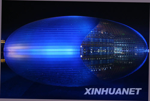 8月2日晚,中國國家大劇院在景觀照明燈的映襯下顯得分外迷人。 當晚,國家大劇院景觀燈組再次進行調試,為即將到來的奧運會增光添彩。 新華社記者 李明放 攝