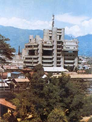 1986年4月7日,日本東京都新市政廳的設計競賽審查委員會公布,丹下建三的方案被評選為這次引人注目的設計競賽的最優秀作品。 東京的東京都新市政廳擬建于新宿付都中心。總用地面積4.2公頃,總建筑面積要求37萬平米,在設計條件中要求新的廳舍應該成為21世紀發展的東京自治和文化象征,國際城市東京的象征。丹下方案朝京亡廣場旅館方向布置了43M七層高的部分,圍成一個半園形廣場,靠近海亞特世紀旅館方面布置了243M高的雙塔作為第一廳舍,雙塔總面寬108.8M,中間部分高150M,在日生大廈的南面布置的階梯狀的第二廳舍,34層163米高。在第一第二廳舍之間設置了中央林蔭道,把廳舍的三個部公緊密的連接起來,并與廳舍南面的新宿中央公園二大片綠化連成一體,建筑立面是深淺花崗巖與反射玻璃的組合。建筑主體結構和外裝修壽命以100年以上,至200年考慮。內部裝修及設施以5-20年考慮更新。 丹下認為,就新廳舍建筑而言,最基本的是要考慮行政功能現代化--辦公自動化所需的無柱靈活空間,預測信息化時代的信息功能的充實。同時在發生災害時可以做為了解整個東京確實情報的防災據點。以此考慮了結構的堅固性。建筑轉折部分,布置了大量與此配合的的綠化,成為充滿人情味的空間。