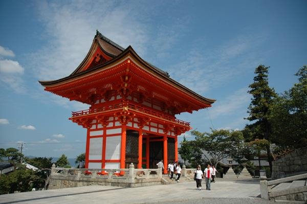 被列為日本國寶建筑之一的「清水寺」,是在公元1633年由德川家康捐資興建的,由于日本古時除了東、西兩大愿寺可蓋在京城內(nèi)之外,所有的廟宇神社都只能依山而建,而清水寺座落在山腰上,落差極大,這座完全木造的寺院總面積達13萬平方公尺之廣,其內(nèi)最有名的「清水舞臺」,離地五十公尺高卻只靠139根木柱支撐結(jié)構(gòu),可見當年工程之浩大與艱巨!參觀清水寺時,一路拾階而上,除了參拜諸神,憑欄遠望,更可將京都市景盡收眼底。 宛如古都的風物詩般,清水寺外圍的一景一色,完完全全的將京都的風采表露無疑,無論是春天的櫻花,夏天的瀑布,秋天的紅葉或是冬天的細雪,清水寺都彷佛是為了證明京都而存在的一般,無時無刻吸引著人們流連忘返。 清水寺的西門建于公元1607年,建筑外觀色澤鮮艷、雕刻細致有加;建筑形態(tài)呈單層八柱,屋頂屬于"切妻"式建筑。 從清水坂前往清水寺道路兩側(cè),除了有京都傳統(tǒng)木造住宅林立外,沿途還有古老的神社和寺廟,無不充滿寧謐與靜穆氣氛。古時候來到清水寺參拜的武士,通常先把馬匹栓在仁王門前面清水坂上的馬廄里,因此這個馬廄就成為室町時代遺留至今的建物。 歷史特色: 清水寺是京都最古老的寺院,建于公元798年,占地面積13萬平方米,慈恩大師創(chuàng)建。相傳慈恩大師是唐僧在日的第一個弟子。現(xiàn)存清水寺為1633年重修。 清水寺為棟梁結(jié)構(gòu)式寺院。正殿寬19米,進深16米,大殿前為懸空的“舞臺”,由139根高數(shù)十米的大圓木支撐。寺院建筑氣勢宏偉,結(jié)構(gòu)巧妙,未用一根釘子。寺中六層炬木筑成的木臺為日本所罕有。 舞臺的建筑,巍峨地聳立于陡峭的懸崖上,景色自是美妙,失足掉落下去祉休想揀得命來,以至日語里誕生出一條成語來:"從清水的舞臺上跳下去",用來形容毅然決然地做某一件事。