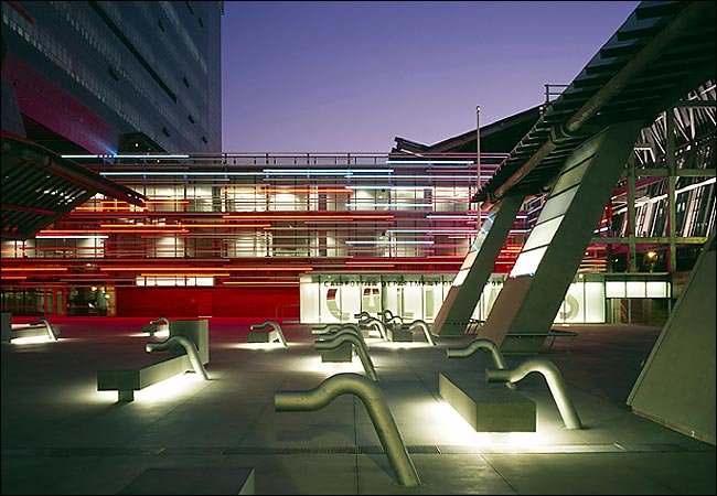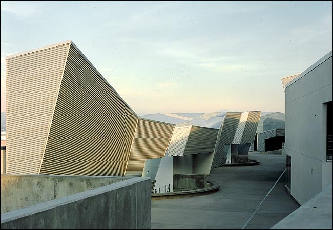 Dr. Theodore T. Alexander Jr. Science Center School in Los Angeles Diamond Ranch High School in Pomona, Calif., whose principal architect was Thom Mayne of the Santa Monica firm Morphosis Diamond Ranch High School has two rows of fragmented buildings set on either side of a long central sidewalk "canyon" and a monumental stairway embedded in the hillside that doubles as an amphitheater The Caltrans District 7 Headquarters, designed by Mr. Mayne, in downtown Los Angeles