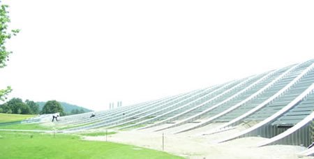 保羅·克利(Paul Klee)中心 德國波恩的保羅·克利(Paul Klee)中心正式對外開放,該中心由意大利建筑師倫佐·皮亞諾(Renzo Piano)設計。博物館位于綠意濃濃的伯爾尼郊區。由三座相連的浪形建筑組成,看似由當地風景連成一體的小山。皮阿諾把它命名為“風景雕塑”。三座小山似的建筑通過一條被稱作“博物館大街”的150米長通道相連。光線、虛浮及自然是表現主義大師保羅·克利作品中的三大元素,也正是這三個元素啟發了倫佐·皮亞諾建造博物館。“克利是20世紀最多產也是全能的藝術家之一。他的天分是多方面的,因此很容易引起誤解——似乎你可以任意地選擇一種方式來理解他。克利萊曾是建筑學校一位多才多藝的教師。他的課并不是把所有的藝術形式混在一起,而是讓不同的藝術形式相互深入,相互浸潤,其中潛藏著詩一樣的涵義。在克利的作品里,你能找到任何你想要的東西———很深刻,也很復雜。因此我們有了這樣的想法:寧愿找一個地方,挖地破土,創造出一件‘地景藝術’的作品,而不只是建一幢高樓。”倫佐·皮亞諾為自己的設計作了這樣的注解。由于克利的作品非常脆弱,常常是畫在紙上的水彩畫,甚至是畫在紙上的油畫,把這些脆弱的作品暴露在光線下顯然非常危險。因此“博物館大街”那部分,倫佐·皮阿諾盡量避免使用自然光。倫佐·皮亞諾的另一個著名作品是和里查德·羅杰斯(Richard Rogers)一起設計建造的巴黎蓬皮杜藝術中心。除了藝術展覽外,保羅·克利中心還為音樂、歌劇、舞蹈及文學提供平臺。