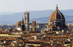 佛羅倫薩主教堂通常也叫做圣瑪麗亞百花大教堂,是13世紀末,行會從貴族手中奪取政權以后,作為共和政體的紀念碑而建造的。它的設計和建造過程、技術成就和藝術特色,都體現著文藝復興這個嶄新時代的進取精神。
