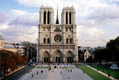 ![]() 巴黎圣母院座落于巴黎市中心塞納河中的西岱島上,始建于1163年,是巴黎大主教莫里斯·德·蘇利決定興建的,整座教堂在1345年才全部建成,歷時180多年。巴黎圣母院是一座典型的“歌特式”教堂,之所以聞名于世,主要因為它是歐洲建筑史上一個劃時代的標志。圣母院的正外立面風格獨特,結構嚴謹,看上去十分雄偉莊嚴。它被壁柱縱向分隔為三大塊;三條裝飾帶又將它橫向劃分為三部分,其中,最下面有三個內凹的門洞。門洞上方是所謂的“國王廊”,上有分別代表以色列和猶太國歷代國王的二十八尊雕塑。1793年,大革命中的巴黎人民將其誤認作他們痛恨的法國國王的形象而將它們搗毀。但是后來,雕像又重新被復原并放回原位。“長廊”上面為中央部分,兩側為兩個巨大的石質中欞窗子,中間一個玫瑰花形的大圓窗,其直徑約10米,建于1220—1225年。中央供奉著圣母圣嬰,兩邊立著天使的塑像。兩側立的是亞當和夏娃的塑像。教堂內部極為樸素,幾乎沒有什么裝飾。大廳可容納9000人,其中1500人可坐在講臺上。廳內的大管風琴也很有名,共有6000根音管,音色渾厚響亮,特別適合奏圣歌和悲壯的樂曲。曾經有許多重大的典禮在這里舉行,例如宣讀1945年第二次世界大戰勝利的贊美詩,又如1970年法國總統戴高樂將軍的葬禮等。巴黎圣母院是一座石頭建筑,在世界建筑史上,被譽為一級由巨大的石頭組成的交響樂。雖然這是一幢宗教建筑,但它閃爍著法國人民的智慧,反映了人們對美好生活的追求與向往。