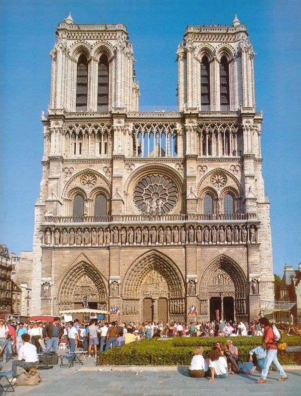 哥特式建筑是11世紀(jì)下半葉起源于法國,13~15世紀(jì)流行于歐洲的一種建筑風(fēng)格。主要見于天主教堂,也影響到世俗建筑。哥特式建筑以其高超的技術(shù)和藝術(shù)成就,在建筑史上占有重要地位。 哥特式教堂的結(jié)構(gòu)體系由石頭的骨架券和飛扶壁組成。其基本單元是在一個正方形或矩形平面四角的柱子上做雙圓心骨架尖券,四邊和對角線上各一道,屋面石板架在券上,形成拱頂。采用這種方式,可以在不同跨度上作出矢高相同的券,拱頂重量輕,交線分明,減少了券腳的推力,簡化了施工。 飛扶壁由側(cè)廳外面的柱墩發(fā)券,平衡中廳拱腳的側(cè)推力。為了增加穩(wěn)定性,常在柱墩上砌尖塔。由于采用了尖券、尖拱和飛扶壁,哥特式教堂的內(nèi)部空間高曠、單純、統(tǒng)一。裝飾細(xì)部如華蓋、壁龕等也都用尖券作主題,建筑風(fēng)格與結(jié)構(gòu)手法形成一個有機的整體。 歐洲各國的經(jīng)典哥特式建筑 11世紀(jì)下半葉,哥特式建筑首先在法國興起。當(dāng)時法國一些教堂已經(jīng)出現(xiàn)肋架拱頂和飛扶壁的雛型。一般認(rèn)為第一座真正的哥特式教堂是巴黎郊區(qū)的圣丹尼教堂。這座教堂四尖券巧妙地解決了各拱間的肋架拱頂結(jié)構(gòu)問題,有大面積的彩色玻璃窗,為以后許多教堂所效法。 法國哥特式教堂平面雖然是拉丁十字形,但橫翼突出很少。西面是正門入口,東頭環(huán)殿內(nèi)有環(huán)廊,許多小禮拜室成放射狀排列。教堂內(nèi)部特別是中廳高聳,有大片彩色玻璃宙。其外觀上的顯著特點是有許多大大小小的尖塔和尖頂,西邊高大的鐘樓上有的也砌尖頂。平面十字交叉處的屋頂上有一座很高的尖塔,扶壁和墻垛上也都有玲瓏的尖頂,窗戶細(xì)高,整個教堂向上的動勢很強,雕刻極其豐富。 西立面是建筑的重點,典型構(gòu)圖是:兩邊一對高高的鐘樓,下面由橫向券廊水平聯(lián)系,三座大門由層層后退的尖券組成透視門,券面滿布雕像。正門上面有一個大圓宙,稱為玫瑰窗,雕刻精巧華麗。法國早期哥特式教堂的代表作是巴黎圣母院。 巴黎圣母院始建1163年,前后歷時四百年才完工,是哥德式教堂的代表,始建于1163年,1345年建成。由三座殿堂組成,也為哥特式建筑。其中一大廳長130米,寬47米,高35米,一對塔樓高69米。其內(nèi)精雕細(xì)鑿,頗有鬼斧神工之能,尤其是正門三個大拱門上的浮雕,共有千余人物,非常細(xì)致。巴黎圣母院內(nèi)部裝璜,嚴(yán)謹(jǐn)肅穆,但以彩色玻璃窗的設(shè)計最吸引人,其中有長有圓有長方,但以其中一個圓形為最,它的直徑有九公尺,俗稱“玫瑰玻璃窗”。 ![]() ![]() ![]() ![]() ![]() ![]() ![]()