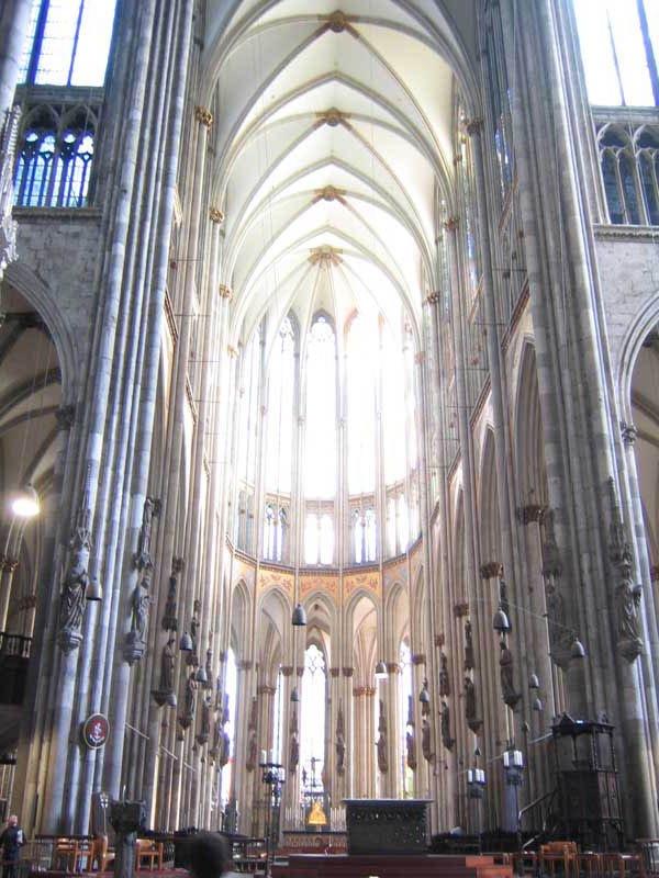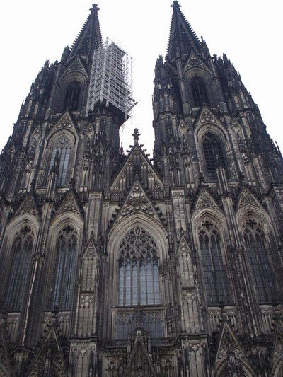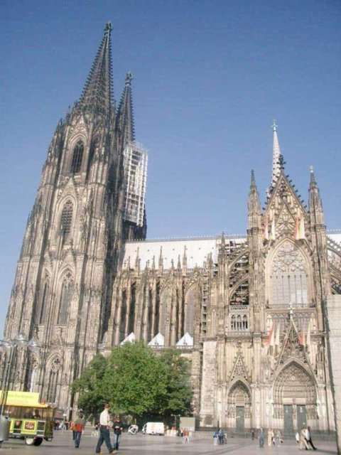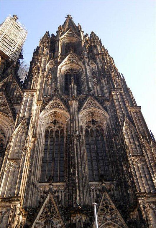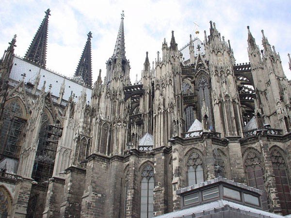 素有歐洲最高尖塔之稱的科隆大教堂,建在萊茵河畔,歷時600余年才完成。科隆大教堂以輕盈、雅致著稱于世,成為科隆城的象征,也是世界最高的教堂之一。它是當時德國人興建的一座宏偉的紀念性建筑。后來成為德國宗教、民族和藝術統一的象征。 科隆大教堂是最完美的哥特式大教堂。它始建于1248年左右,高157.38米,東西長約145米,南北寬約86米,建筑面積約6000平方米。整個建筑全部由磨光的石塊砌成。科隆大教堂的建造前后整整持續了632年,是歐洲建筑史上建造時間最漫長的建筑物之一,它還具有早期基督教時代的樸素風格。 教堂中央是兩座與門墻連砌在一起的雙尖塔,高16l米,是全歐洲最高的尖塔,四周林立著無數座的小尖塔與雙尖塔相呼應。教堂內有10座禮拜堂,中央大禮拜堂穹頂高43米,中廳部跨度為15.5米,是目前尚存的最高的中廳。教堂的鐘樓上有重2.4噸的圣彼得鐘,被譽為"歐洲中世紀建筑藝術的精粹"。教堂四壁上方有總數達1萬多平方米的窗戶,全部裝上描繪有《圣經》人物的各種顏色的玻璃,色彩十分絢麗。教堂內還有一座11世紀德國奧托王朝時期的木雕《十字架上的基督》,成為哥特藝術的先導,對后世的雕刻產生了重大的影響。 ![]() ![]() ![]() ![]() ![]() ![]() 德國教堂很早就形成自己的形制和特點,它的中廳和側廳高度相同,既無高側窗,也無飛扶壁,完全靠側廳外墻瘦高的窗戶采光。拱頂上面再加一層整體的陡坡屋面,內部是一個多柱大廳。馬爾堡的圣伊麗莎白教堂西邊有兩座高塔,外觀比較素雅,是這種教堂的代表。