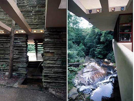 流水別墅(Falling Water) 流水別墅:賴特最著名的設計作品——考夫曼別墅(流水別墅)建成于1936年,流水別墅被譽為“絕頂的人造物與幽雅的天然景色的完美平衡”,是“二十世紀的藝術杰作”。懸挑的樓板在后邊的石墻和自然山石中錨固。內部空間相互流通,一乘小梯與溪水聯系。大膽的設計手法使之成為無與倫比的世界著名現代建筑。 在茂密的叢林掩映下,在清清的溪流和嶙岣石塊間,這座房子從中心向各個方向伸展著、交錯著,白色的巨大陽臺凌空于水面之上,流水叮咚地從房子底下蜿蜒淌過,從平臺下奔瀉而出…… 忘情地將手伸進溪水中,或者只是靜靜地坐著,什么都可以想,什么都可以不想。在這樣的別墅中度假,該是怎樣的畫境,怎樣的詩意,怎樣的享受…… 建筑在山林之中的度假別墅,也許大家已經看過很多,但是建在溪水瀑布之上的別墅,你可曾聽說過?在美國賓夕法尼亞州的一個叫做“熊跑”的幽靜峽谷中,就有這樣一幢奇妙的房子。在茂密的叢林掩映下,在清清的溪流和嶙峋石塊間,這座房子從中心向各個方向伸展著、交錯著,白色的巨大陽臺凌空于水面之上,流水叮咚地從房子底下蜿蜒淌過,從平臺下奔瀉而出。如果你有興趣,還可以從大陽臺上順梯子往下爬,你在屋子里便已聽到的潺潺流水聲,此刻便在你足下。你可以趴在巖石上,忘情地將手伸進溪水中,或者只是靜靜地坐著,什么都可以想,什么都可以不想。在這樣的別墅中度假,該是怎樣的畫境,怎樣的詩意,怎樣的享受?這幢房子建成后就名聲遠揚,經常有人來此參觀,人們稱之為“流水別墅”或者“落水山莊”。 建筑的外形顯得自然、隨意、舒展,主要房間與室外的陽臺、平臺以及道路,相互交織在一起,錯落有致,亦取得與周圍自然景色相溶合的效果。建筑材料主要用白色的混凝土和栗色毛石。水平向的白色混凝土平臺與自然的巖石相呼應,而栗色的毛石就是從周圍山林搜集而來的,有著“與生俱來”、自然質樸和野趣的意味。不同凡響的室內使人猶如進入一個夢境,通往巨大的起居室空間之過程,正如經常出現在賴特作品的特色一樣,必然先通一段狹小而昏暗的有頂蓋的門廊,然后進入反方向上的主樓梯透過那些粗獷而透孔的石壁,右手邊是直交通的空間,而左手便可進入起居的二層踏步。萊特對自然光線的巧妙掌握,使內部空間仿佛充滿了盎然生機,光線流動于起居的東、南、西三側,最明亮的部分光線從天窗瀉下,一直通往建筑物下方溪流崖隘的樓梯,東、西、北側幾呈圍合狀的室,則相形之下較暗,巖石鋪成的地板上,隱約出現它們的倒影,流瀑在起居室空間之中,而從北側及山崖上反射在樓梯上的光線顯得朦朧柔美。在心理上,這個起居室空間的氣氛,隨著光線的明度變化,而顯現多樣的風采。 “流水別墅”這個建筑具有活生生的、超越時間的質地,為了越過建筑史的諸多流派,它似乎全身飛躍而起,座落于賓夕法尼亞的巖崖之中,指揮著整個山谷,超凡脫俗。建筑內的壁爐是以暴露的自然山巖砌成的,瀑布所形成的雄偉的外部空間使落水山莊更為完美,在這兒,自然和人悠然共存,呈現了天人合一的最高境界。特別值得注意的是,瀑布上的大平臺連帶1/3的起居室都飛挑于瀑布之上,對于當時的工程技術而言,無疑是一大創舉。 ![]() ![]() ![]() ![]() ![]() ![]() ![]()