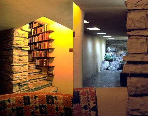 流水別墅這個建筑具有活生生的,初始的原型的,超越時間的質地,為了越過建筑史的諸多流派,它似乎全身飛躍而起,座落花流水于賓夕法尼亞的巖崖之中,指揮著整個山谷,超凡脫俗,建筑內的壁爐是以暴露的自然山巖砌成的,瀑布所形成的雄偉的外部空間使落水山莊更為完美,在這兒自然和人悠然共存呈現了天人和一的最高境界。 流水別墅的建筑造型和內部空間達到了偉大藝術品的沉穩,堅定的效果。這種從容鎮靜的氣氛。連辣潛其間,力與反力相互集結之氣勢,在整個建筑內外及其布局與陳設之間。不同凡響的室內使人猶如進入一個夢境,通往巨大的起居室空間之過程,正如經常出現在賴特作品的特色一樣,必然先通一段狹小而昏暗的有頂蓋的門廊,然后進入反方向上的主樓梯透過那些粗獷而透孔的石壁,右手邊是直交通的空間,而左手便可進入起居的二層踏步,賴特對自然光線的巧妙掌握,使內部空間仿佛充滿了盎然生機,光線流動于起居的東,南,西三側,最明亮的部分光線從天窗瀉下,一直通往建筑物下方溪流崖隘的樓梯,東西,北側幾呈圍合狀的室,則相形之下較為暗,巖石陳的地板上。隱約出現它們的倒影,流布在起居室空間之中。從北側及山崖是反射進來的光線和反射在樓梯的光線顯得朦朧柔美。在心理上,這個起居室空間的氣氛,隨著光線的明度變化,而顯現多樣的風采。 在材料的使用上,流水別墅也是非常具有象征性的,所有的支柱,都是粗獷的巖石。石的水平性與支柱的直性,產生一種明的對抗,所有混凝土的水平構件,看來有如貫穿空間,飛騰躍起賦予了建筑最高的動感與張力,例外的是地坪使用使用的巖石,似乎出奇的沉重,尤以懸挑的陽臺為最。然而當你站在人工石面陽臺上,而為自然石面的壁支柱所包圍時對于內部空間或許會有更深一層的體會。因為室內空間透過巨大的水平陽臺而延伸,銜接了巨大的室外空間——崖隘。賴特對于國際形式主義空談機能主義的態度,濃縮地表現在由起居室通到下方溪流的樓梯。這個著名的樓梯,關聯著建筑與大地,是內、外部空間不可缺少的媒介,且總會使人們禁不住地一再流連其間。 流水別墅可以說是一種以正反相對的力量在做妙的均衡中組構而成的建筑。也可以說是水平或傾斜穿桿或近幾年推移的空間手法,交錯融合的稀世之作。 流水別墅的空間陳設的選擇、家具樣式設計與布置都獨具匠心。同時卡夫曼家人對這幢無價產業付出了愛和關切。他們以偉大的藝術品、家具、勤快的維護工作以及他們私人的物品來陪襯它。建筑永遠是建筑師的作品,但卻無法供給有關私人的物品。顯然而卡夫曼卻能夠辦到,并能夠珍惜賴特的一切努力。