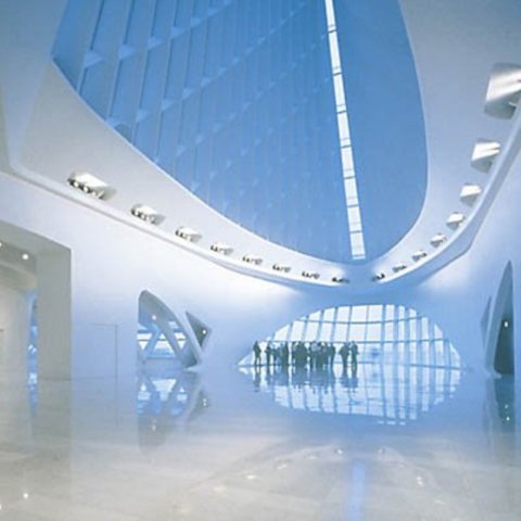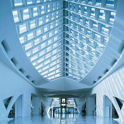 從80年代以來,無論是后現代主義,還是解構主義,都搖動旗號,以丑以怪以非理性掀起了審美價值觀上的革命。如若有誰還在大言不慚地喊叫著建筑的美,則其落伍老土為無疑了。新奇而丑怪,看久了以后就不再新奇,而更加丑怪,有的時候難免會折磨得看的人心情沮喪起來。忽見卡拉特拉瓦這清新大膽的建筑,看到美的回歸,情不自禁為之大快。以技術能力探究人類制造美的潛力,以自然法則創造超邁的人工造物而又與自然交相輝映,這股豪氣,和文藝復興時期的氣度一脈相承。