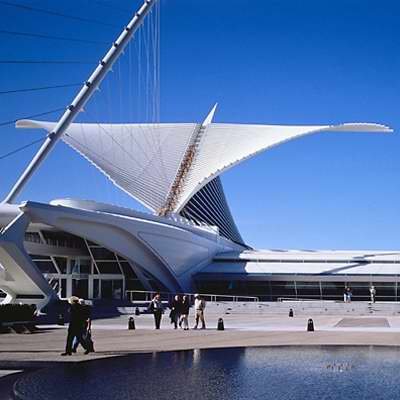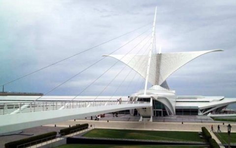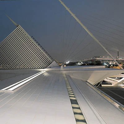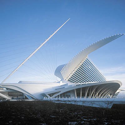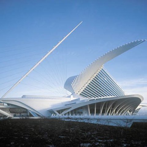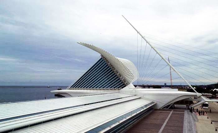 2001年,卡拉特拉瓦在美國的第一個作品建成,是威斯康星州密爾沃基的美術博物館擴建工程。此地原有一個舊館,是在1957年由當地的建筑師事務所設計的,這一次卡拉特拉瓦加建的Quadracci展廳,名號不大,其實卻造成了絕對喧賓奪主的局面。
