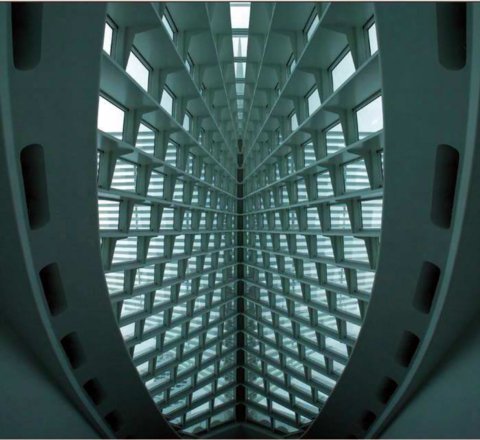 門廳以內的室內空間,更是幾乎通身純白的格局,而遮陽板設計上那一絲纖巧的痕跡則蕩然無存了。早在1983年設計蘇黎世的一個火車站的時候,卡拉特拉瓦就已經充分開掘了混凝土結構的雕塑表現力,把50年代由沙里寧和布魯諾·奈爾維發揚到了巔峰水準的結構美做得進一步地純和美。在米爾沃基美術館里,他以厚重的混凝土拱作為基本元素反復疊加,一通操控下,沿著南北軸線長長向北伸展的展覽空間產生了統一的形象特征,都歸結在了遵循結構規則的綿長韻律中。最簡單、最樸實的結構功能,造就了極其雅致而壯麗的美。由于混凝土的拱遠遠伸出的遠端正好為展廊托出了檐口,因此展廊里能照得到的,基本上只是室外地面反射回來的漫射光,既能保證足夠的自然采光,又避免了陽光直射對藏品的破壞。長排長排拱的重復讓人聯想到教堂時代的結構方式,自然地,又為這個空間添了幾分神圣感。據說,這個美術館里陳列的多是上好的藝術品,放進這樣的展廊,也不算辱沒了。