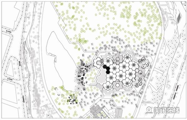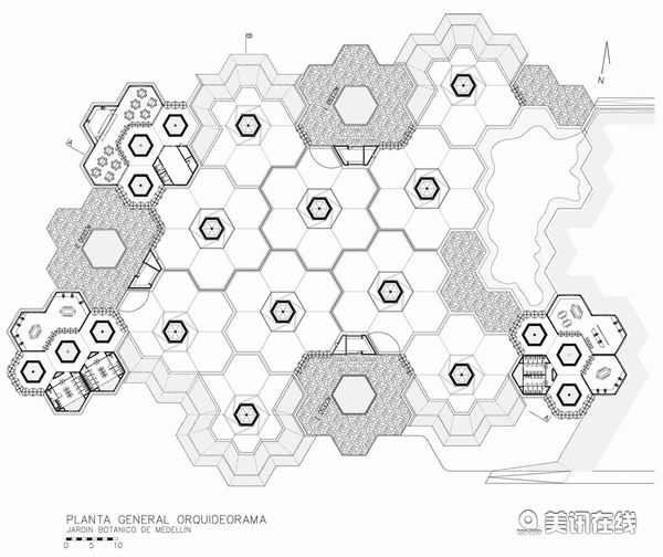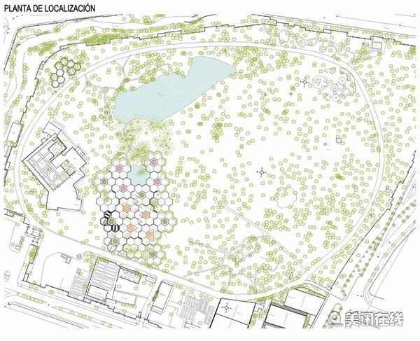 地點:哥倫比亞麥德林市植物園 客戶:麥德林市植物園 建筑公司:Ménsula S.A. 修建時間:2005-2006年 工程預算:523美元/平方米 建筑面積:4,200平方米 材料:木材、鋼 Orquideorama是哥倫比亞麥德林市植物園里的一個生態建筑,它主要以鋼材和木材為原料,鋼材為骨架,外面是木材包邊。它將建筑和有機生命體有效的結合起來。從微觀來看,自定義的幾何圖案以及材料的組織結構都讓建筑本身具有一種生活的性質;從宏觀上看,整個建筑有一種很強的視覺效應,每一個單體采用了蜂窩的幾何形態而連在一起,有系統地重復,不斷的延伸開來,跟茂密的植物很好的融合在一起。 Orchideorama的修建就像是種植花草一樣,一株花長成了,在其旁邊將會長出另外一株,直到整個花園成型。花草可以被種植在任何可能的地方,自身的生長結構能夠很快的與土地結構適應起來。 ![]() ![]() ![]()