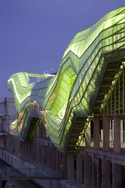 長(zhǎng)廊位于法國(guó)巴黎的碼頭,由Jakob+MacFarlane提供設(shè)計(jì)。這個(gè)長(zhǎng)廊的靈感主旨是在塞納河及河岸邊的倉(cāng)庫(kù)上創(chuàng)建一個(gè)新的外部裝飾,并能夠提供給行人行走使用。同時(shí)這個(gè)方案還是一個(gè)豐富的組合,其中包含長(zhǎng)廊背部倉(cāng)庫(kù)的內(nèi)部設(shè)計(jì),而設(shè)計(jì)則主要集中于來(lái)自時(shí)裝的設(shè)計(jì)主題,其中包括法國(guó)時(shí)裝學(xué)院的展覽空間,音樂(lè)制作空間,書(shū)店,咖啡館和一個(gè)餐廳等。