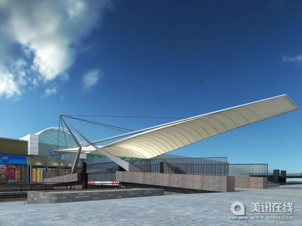 憑借作品Forth & Clyde Canal人行橋上的天鵝形遮篷,英國頂級結構工程公司布羅•哈波爾德(Buro Happold)贏得了一枚Saltire Award土木工程獎。 這個天蓬的委托者是蘇格蘭克萊德班克鎮城市復興開發公司Clydebank Re-built。布羅•哈波爾德公司攜手RMJM建筑事務所共同為該項目進行了規劃設計。天蓬的設計靈感源自一只飛行中的姿態優雅的天鵝,它橫跨了克萊德班克鎮中心的Forth and Clyde Canal人行橋,為這個小鎮帶來了新氣息。 這個天蓬的跨度超過了40米,中心支柱任意兩端的懸臂達20米。這是一個帶有自潔式功能的建筑物,它身著了一層可重復利用的PTFE涂層玻璃“外衣”,它的“胳膊”向外伸展做出了一系列拱形動作,從而形成了天鵝修長輕盈的翅膀。延伸到人行橋任意一端的四條鋼制腿部上冒出來的鋼鐵手臂將兩只天鵝翅膀緊緊地固定住,給予了穩定的撐力。 “在這項設計里,我們所面臨的一個重要挑戰就是天鵝形遮篷遭遇到大型風力的提升,”布羅•哈波爾德公司Ian Hargreaves表示,“通過采用電纜、懸掛桅桿,我們將重力荷載和向下風力進行了良好地防御控制,此外,將手臂和翅膀分離以形成一個三角孔桁梁也防止了風力提升!