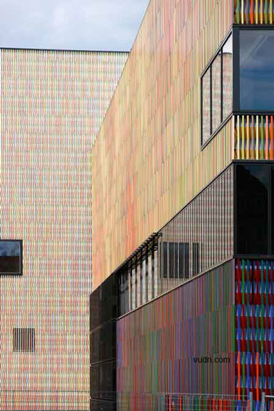 柏林建筑師Sauerbruch Hutton已經完成了這個位于德國慕尼黑新的布蘭德霍斯特博物館外觀設計。建筑有23種不同顏色的陶瓷棒三萬六千個,并安排了橫向縱向條紋以及鈑金的皮膚。“從角度之間來看,其中陶瓷棒合并成一個堅實的視覺平面,其中的礦物層部分讓橫向條紋背景變得明顯,并取得支配地位,礦物層部分和結構引起了無數的視覺變化。”這是來自建筑師的觀點。