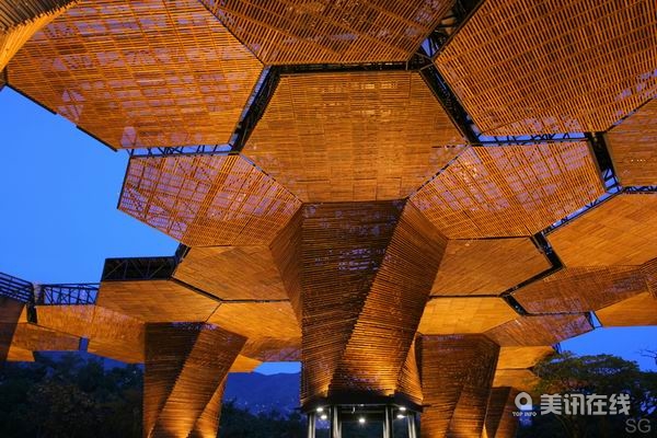 建筑設計:Plan B建筑師事務所、JPRCR建筑師事務所 Orquideorama是哥倫比亞麥德林市植物園里的一個生態建筑,它主要以鋼材和木材為原料,鋼材為骨架,外面是木材包邊。它將建筑和有機生命體有效的結合起來。從微觀來看,自定義的幾何圖案以及材料的組織結構都讓建筑本身具有一種生活的性質;從宏觀上看,整個建筑有一種很強的視覺效應,每一個單體采用了蜂窩的幾何形態而連在一起,有系統地重復,不斷的延伸開來,跟茂密的植物很好的融合在一起。 Orchideorama的修建就像是種植花草一樣,一株花長成了,在其旁邊將會長出另外一株,直到整個花園成型。花草可以被種植在任何可能的地方,自身的生長結構能夠很快的與土地結構適應起來。
