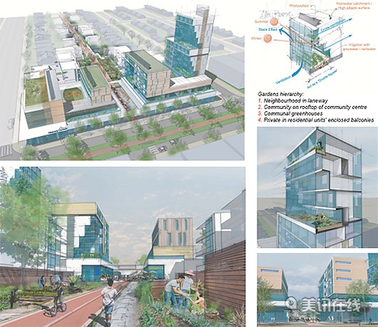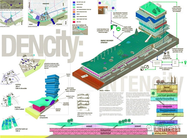 三等獎(jiǎng)得主,來(lái)自溫哥華的Go Design Collaborative公司說(shuō):“在溫哥華的水路入口、服務(wù)區(qū),工廠區(qū)和住宅區(qū)之間有不少?zèng)_突。為了保護(hù)公寓發(fā)展下的工業(yè)和農(nóng)業(yè)用地,DENcity : INTENcity提出一個(gè)優(yōu)化能源的大跨度方案,采用“層疊式”結(jié)構(gòu)能允許無(wú)止境的結(jié)構(gòu)重整和房屋居住。它將聳立在Maprole區(qū),像一座燈塔,象征著溫哥華大膽革新的宣言。 除了以上獲獎(jiǎng)的三個(gè)作品,評(píng)委團(tuán)也平出8個(gè)榮譽(yù)獎(jiǎng):