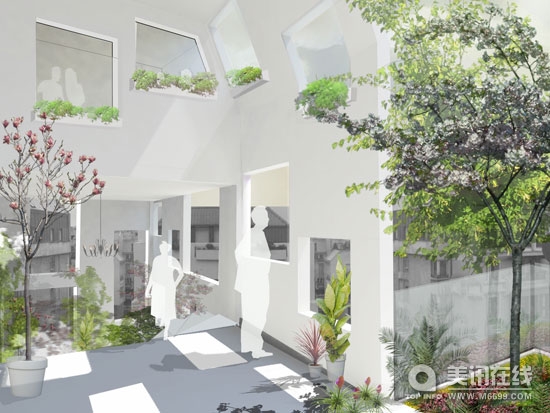 M6B1,一幢位于巴黎開發(fā)區(qū)的學(xué)生公寓,由JDS建筑設(shè)計(jì)事務(wù)所設(shè)計(jì)完成。公寓左側(cè)采用開放式設(shè)計(jì),梯田式層層遞增,考慮到更加舒適明亮的居住氛圍,JDS在建筑內(nèi)部增加了原本屬于建筑外部的元素,如燈光、花草樹木等。這些都為學(xué)生公寓營造了一個(gè)良好的居住環(huán)境。