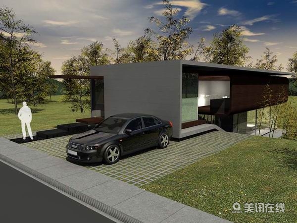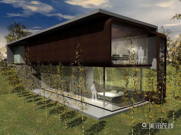 這是一個盒子形狀的混凝土結構建筑,在其前后兩面舍棄了混凝土墻面,而選用木制結構進行圍合,其南面和西面的兩個混凝土結構立面可在陽光照射強烈的時候有效的阻擋光線。西面和東面的木制幕墻放大了整個建筑的觀景窗口。屋頂也為混凝圖制,可有效的防止雨雪的侵蝕。而又點坡度的地面設計則與其地形完美的融合在一起,構成了臥室空間,房子看起來像是懸浮在空中的。 整個空間還使用了一些木管進行裝飾,這些管子為混凝土略顯呆板的結構增添了溫馨的氣氛。地面、墻面以及屋頂都使用混凝土元素使得整個空間更具流線性。第一個房間為浴室,在其一面使用了網格設計,主人在沐浴的同時還能欣賞優(yōu)美的風景。白色的屏風設計增加了整個建筑的意象性。另一個房間為大廳,將酒吧間、餐廳與起居室囊括其中,開口朝向走廊,使得房間更加開闊,緊鄰東墻的設計使這里成為了一處很好的觀景臺。大廳采用霓虹燈照明設計,使房間充滿了不同的韻味,這也令其與室外空間進行了良好的互動與交流,彰顯了克雷塔羅(Queretaro)山谷區(qū)的建筑特色。臥室與浴室位于一層并增加了私密性,水晶效果的墻面設計營造出一種懸浮的游離之感,側墻的封閉設計也增加了整個空間的私密性。
