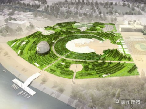 ![]() ![]() 聯合國和平公園項目位于韓國忠州市,該項目是向聯合國第八任秘書長潘基文致以敬意。忠州是潘基文的家鄉,這個項目沿著南漢江建設,一直到Tangeumdae自然公園,它將成為忠州市新的文化界標。這個文化項目的最重要的建筑是新的聯合國紀念堂,它是忠州市的里程碑建筑。 聯合國紀念堂是一個橢圓體建筑,最大直徑為60米。它一共有八層,外加一個地下室。建筑的核心是能容納1500人的大會堂和備用會議室。大會堂里可以看到Tangeumdae自然公園。螺旋向上的斜道上放置著一些展覽品,解說了聯合國1945年到今天的歷史,這個斜道最終通到秘書長陳列館。人類是聯合國最為關心的部分,也是這個聯合國球體建筑的主角。這個球體建筑周圍將種植192顆蘋果樹,代表聯合國成員國的數目。