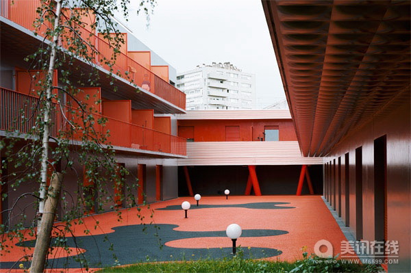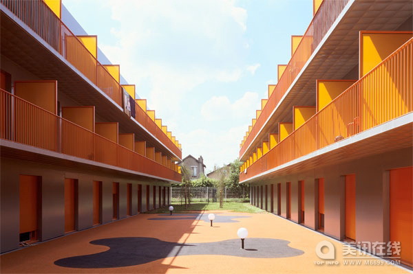 建筑設計:Emmanuel Combarel Dominique Marrec 公寓位于法國Epinay,該地區正在復興,所以為了配合地區規劃,公寓的外表面體現出工業化的特性,而內部則色彩豐富,符合學校氛圍。公寓由四個體塊組成,但是使用上分為三部分:可居住170人的擁有150個住房單元的公寓、19套研究員或客座教授住房、以及為貧困婦女預備的住房(下載包中有分區圖)。而公共空間則包括洗衣房、休閑空間以及花園。 ![]() ![]() ![]()