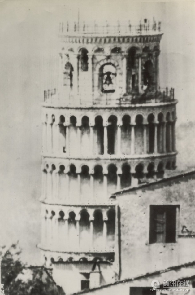 ![]() 但是1178年,當鐘樓興建到第4層時發現由于地基不均勻和土層松軟,導致鐘樓已經傾斜偏向東南方,工程因此暫停。期間的1198年,記載了鐘樓內撞鐘的存在,這標志著鐘樓雖然傾斜,但至少懸掛了一個撞鐘,實現了它作為鐘樓的初衷。 1231年,工程繼續,第一次有記載鐘樓使用了大理石。建造者采取各種措施修正傾斜,刻意將鐘樓上層搭建成反方向的傾斜,以便補償已經發生的重心偏離。1278年進展到第7層的時候,塔身不再呈直線,而是為凹形。工程再次暫停。 1292年,Giovanni Pisano用鉛垂線測量了鐘樓的傾斜度。 1360年,在停滯了差不多一個世紀后鐘樓向完工開始最后一個沖刺,并作了最后一次重要的修正。1372年擺放鐘的頂層完工。54米高的8層鐘樓共有7口鐘,但是由于鐘樓時刻都有倒塌的危險而沒有撞響過。