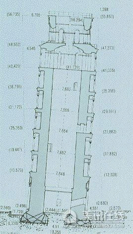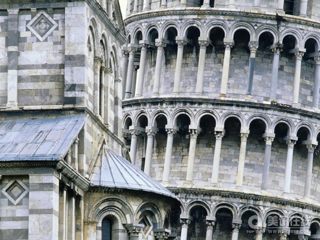 建筑風格 比薩斜塔毫無疑問是建筑史上的一座重要建筑。在發生嚴重的傾斜之前,它大膽的圓形建筑設計已經向世人展現了它的獨創性。雖然在更早年代的意大利鐘樓中,采用圓形地基的設計并不少見,類似的例子可以在拉文納、托斯卡納和翁布里亞找到,但是,比薩鐘樓被認為是獨立于這些原型,在更大程度上,它是在借鑒前人建筑經驗的基礎上,獨立設計并對圓形建筑加以了發展,形成了獨特的比薩風格。 比薩大教堂和比薩斜塔形成了視覺上的連續性比如,鐘樓的圓形設計被認為是為了同一旁的大教堂建筑形成反射而相對應,因此有意地模仿教堂半圓形后殿的曲線設計。更重要的是,鐘樓與廣場上對圓形結構的強調是相一致的,尤其是在宏偉的、同樣是圓形的洗禮堂奠基以后,整個廣場更像是有意設計成耶路撒冷復活教堂(Anastasis)的現代版本。這種的設計正來源于經典的古代建筑。 鐘樓的裝飾格調繼承了大教堂和洗禮堂的經典之作,墻面用大理石或石灰石砌成深淺兩種白色帶,半露方柱的拱門、拱廊中的雕刻大門、長菱形的花格平頂、拱廊上方的墻面對陽光的照射形成光亮面和遮蔭面的強烈反差,給人以鐘樓內的圓柱相當沉重的假象。大教堂、洗禮堂和鐘樓之間形成了視覺上的連續性。 ![]() 傾斜的原因和趨勢 幾個世紀以來,鐘樓的傾斜問題始終吸引著好奇的游客、藝術家和學者,使得比薩斜塔世界聞名。 比薩斜塔為什么會傾斜,專家們曾為此爭論不休。尤其是在14世紀,人們在兩種論調中徘徊,比薩斜塔究竟是建造過程中無法預料和避免的地面下沉累積效應的結果,還是建筑師有意而為之。進入20世紀,隨著對比薩斜塔越來越精確的測量、使用各種先進設備對地基土層進行的深入勘測,以及對歷史檔案的研究,一些事實逐漸浮出水面:比薩斜塔在最初的設計中本應是垂直的建筑,但是在建造初期就開始偏離了正確位置。 ![]()