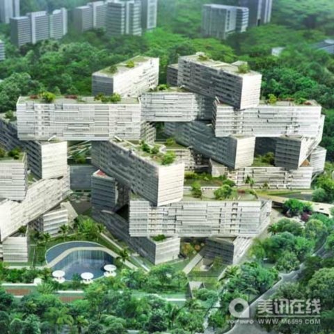 ![]() ![]() OMA公司的Ole Scheeren設計了一種新型的住宅形式,其中各個住宅建筑相互交錯,相互疊加,俯瞰類似于一個六邊形的建筑體。這個住宅位于新加坡,將由CapitalLand and Hotel Properties Limited公司開發。它毗鄰Alexandra公路和Ayer Rajah高速路,在樹木茂盛的南部山脊(Southern Ridges)之中。開發總面積為170,000平方米,將建造1040個面積各異的公寓,另外還包括戶外空間和景觀。 這個相互交織的住宅建筑體同新加坡以前獨立的、垂直的標準公寓建筑類型迥然不同,它以一種極其另類的方法創造了一個新的住宅環境:私人空間和公用空間區域相互疊加,并同周圍的自然環境融合在一起。這個建筑群以每六層作為一個建筑體,整個建筑群總共有三十一層,各個建筑體相互交織疊加,形成了八個開放的庭院。 開放的屋頂花園、自然景觀、空中平臺和像瀑布一樣的陽臺,最大化的呈現了自然特性。同時,建筑的設計也遵循了可持續性的原則,考慮到了當地的陽光、風力、氣候的特點,并結合了對環境影響低的能量使用策略。 在開闊的視野中,住宅的設計也做到了保護私人住戶的隱私,同時也加入了許多公用區域。住宅中很多服務設施被置于茂盛的植物中,為人們創造了社交、休閑娛樂場所。 Scheeren說:“這個設計解決了當代社會中需要增加公共空間和社交場所的問題,同時,多樣性的室內外空間設計也維護了公共的住宅空間和個人空間之間關系的問題。” 新加坡CapitaLand Residential公司CEOPatricia Chia先生說:“這是在吉爾曼高地(Gillman Heights)建造一個住宅區的最好機會,這個住宅區將挑戰當前的住宅設計定義。在開發令人稱道的外部環境的同時,我們也非常注重為住宅建造一個舒適的室內居住空間。相互交織的住宅以及周圍的自然環境增強了社區內的關聯性,Ole Scheeren為新加坡創造了一處新的地標。” 此設計由Ole Scheeren帶頭,與OMA合伙人Eric Chang一同完成。Scheeren主要負責亞洲地區分公司的工作,他參與了中國北京中央電視臺總部和北京電視文化中心以及曼谷的MahaNakhon的設計。他之前的作品有紐約和洛杉磯的Prada中心。