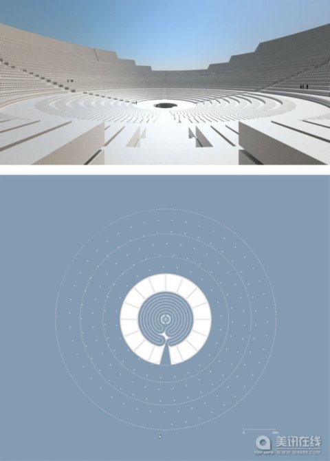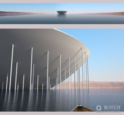 人類對待死亡的態度將各種文化連接在了一起,創造了能超越時間和習俗的墓地。對死者的尊敬和讓他們安息使得設計者在死海的中心處創造了一個大型墓葬園“Yarauvi”。 無論國籍、種族、宗教信仰、年齡是什么,任何人都可以在此安息。家人將在死海的南岸上一座碼頭向他們的親人道別。船只會將死者和幾位哀悼者送到Yarauvi,從底部進入,穿過一個迷宮般的路徑進入到中心地帶。死者將被運送到上方的空間安葬。 墓葬園是一個同心圓環狀結構,坐落在木筏一樣的支架上,這個支架低于水平面,使之在死海的鹽水中漂浮起來。內部更像是一只大碗,向天空打開。石棺將逐步填入層級結構中,以同軸的方式互相面對面。 ![]()