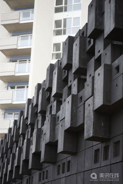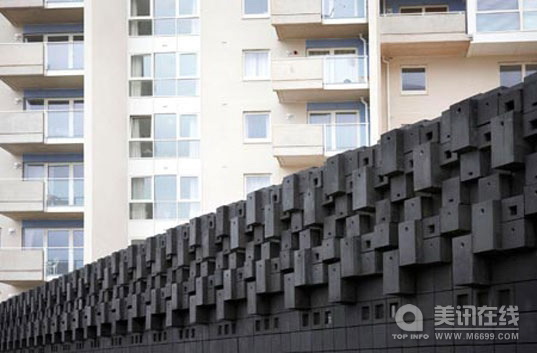 ![]() Gitta Gschwendtner設(shè)計(jì)的動(dòng)物墻壁是供英國加的夫海灣物種棲息之地。這個(gè)50米長的墻上有1000個(gè)供鳥兒和蝙蝠棲息的住宅,同時(shí)這個(gè)墻也是一棟住宅樓和河岸的分隔墻。這堵墻由Charles Church Developments用了兩年半的時(shí)間建造完成,而墻后面的棟住宅建造時(shí)間也是兩年半。 ![]() 也許你會(huì)發(fā)現(xiàn)為什么這堵墻里面什么也沒有呢?不用擔(dān)心,因?yàn)榇禾爝沒有到。當(dāng)春天到來,生物開始選擇新家時(shí),會(huì)有許多種類的蝙蝠,歐掠鳥,麻雀和山雀以這里為家。Gschwendtner說:“這些鳥類并不會(huì)在同一時(shí)間到來,他們會(huì)交替的來到這里居住。”鳥兒們可以從四種不同尺寸的洞穴中選擇它們的住宅。 因?yàn)檫@一地區(qū)棲息的動(dòng)物越來越少,所以Century Wharf地區(qū)的開發(fā)商委托建造了該生態(tài)工程。我們非常開心,春天到來之后,動(dòng)物們?cè)谶@里將會(huì)有一個(gè)新的住處,而Century Wharf的居民也可以目睹到這個(gè)綠色建筑所帶來的驚人效果。 ![]() ![]() ![]() ![]()
