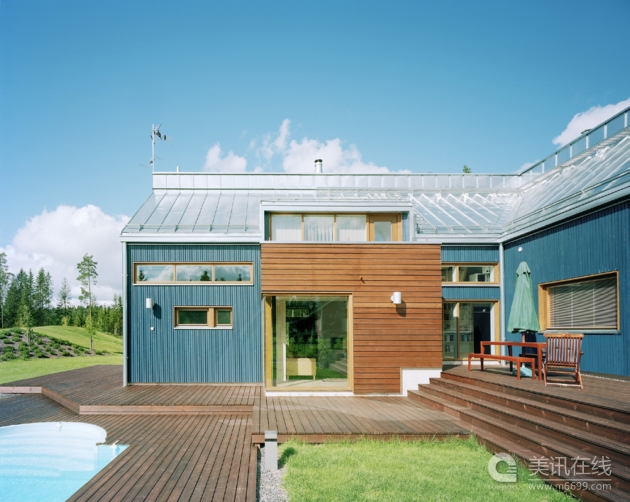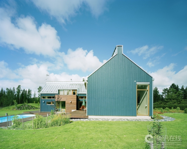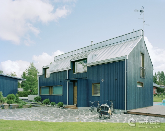建筑設計:Lassila Hirvilammi Architects 建筑地點:芬蘭塞納約基 建筑負責人:Anssi Lassila,Teemu Hirvilammi 項目面積:300平方米 項目年份:2004-2008年 Ulve住宅位于芬蘭一個古老的鄉村區域,它是對該區域一個建于20世紀50年代的小型住宅的增建。該設計的任務就是在此區域中規劃一個相對大型的住宅。 設計師將兩個住宅連接在一起組成一個新的住宅。客廳,用餐室和廚房設置在有著高屋頂的空間之中,臥室和其它輔助房間則分布在兩層樓的空間中。房屋的規?梢愿鶕溆猛具M行改變。 Ulve住宅也是一個文化的融合體。它結合了挪威和芬蘭的建筑方法,并與周圍的自然環境有著非常緊密的聯系。 住宅由地熱供暖。房屋的建造使用了淺藍莓色的木材,屋頂使用了鋅皮材料建成。在建造過程中,人們非常注意材料的選擇和表面處理,這是一個“健康的住宅”。房屋內部的主要材料是云杉木,它們被設計成了不同的形狀,對房屋進行裝飾!拔覀兿嘈判⌒妥≌O計中可以用到新的方法和觀點。” ![]() ![]() ![]() ![]() ![]()