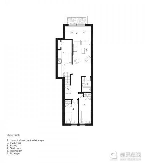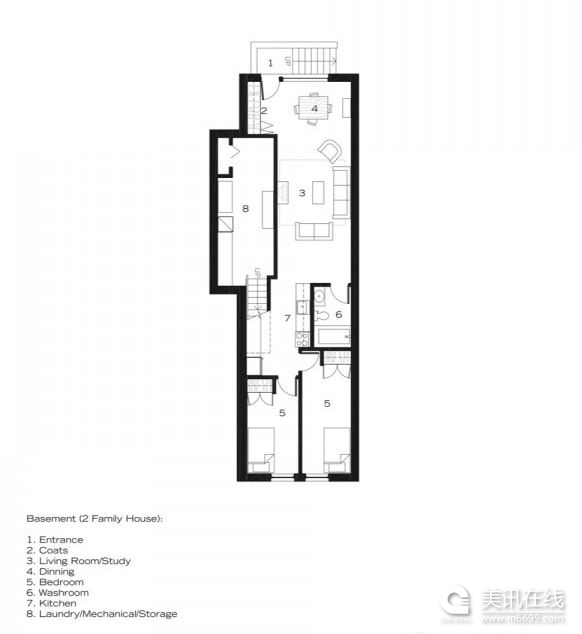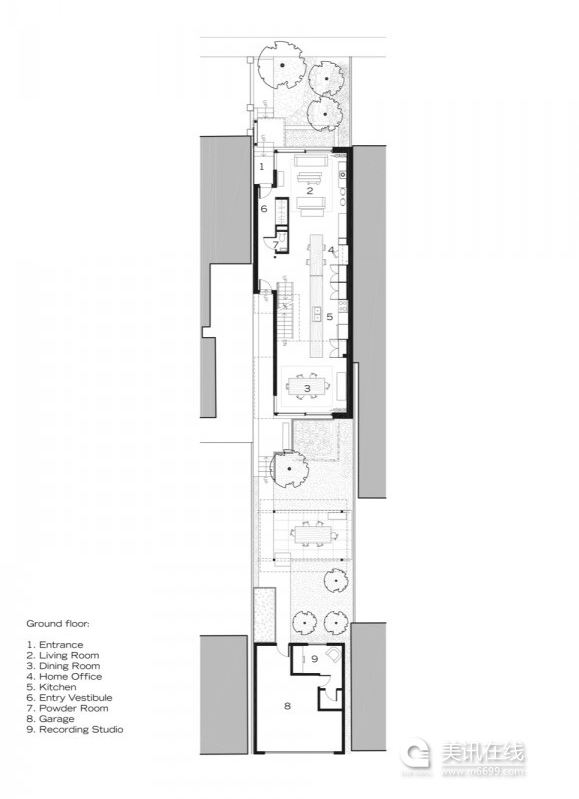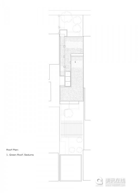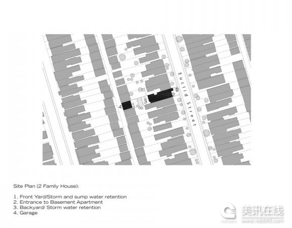 建筑設(shè)計:Levitt Goodman Architects 多倫多官方機構(gòu)計劃對現(xiàn)有的城市框架進行重建。重建后,新的房屋可以增加城市密集度,成本低廉,并具有高效性。歐幾里德住宅就能達到這些要求,它為多倫多具有缺點的房屋類型提供了獨特的解決方法,并且證明了具有創(chuàng)新性的和經(jīng)過深思熟慮的設(shè)計可以創(chuàng)造出體積小,適宜居住,具有靈活性和可持續(xù)性的住宅。 在城市中心的街道上,一個年代已久的工人居住小屋被拆除,在這里建起了一棟帶有地下室的兩層半的住宅,地下室有一半位于地面之上,因此充足的陽光可以照射進入室內(nèi)。兩棟樓之間的車庫被改造成了一個內(nèi)部庭院。 新的房屋具有現(xiàn)代的設(shè)計,但是它的規(guī)模卻能與周圍舊式的房屋融合在一起。房屋的建造使用了粗糙的材料,窗戶由木質(zhì)的框架和半透明的玻璃構(gòu)成,整個外立面看起來極富魅力,并給人一種溫暖之感。 歐幾里德住宅是多倫多第一個帶有綠色屋頂?shù)淖≌目沙掷m(xù)性策略已經(jīng)成為了城市相關(guān)部門的研究案例。房屋的每一層都種有綠色植物。在每個季節(jié),高效的屋頂花園都會為住宅帶來適宜的溫度和清新的空氣。二層的花園使臥室看起來像是懸浮在這一區(qū)域之上。本土植物給人一種完整的感官體驗,使人感受到四季,植物和鳥兒帶來的喜悅。風(fēng)穿過植物發(fā)出沙沙之聲,給人帶來了植物的味道。 房屋的面積是多倫多新建的一般住宅的一半。西面和東面寬大的窗戶和屋頂天窗為室內(nèi)帶來了充足的自然光線,同時減少了人造照明系統(tǒng)的使用。窗戶,門,風(fēng)扇和屋頂花園在夏天可以為人帶來涼爽之感,并且不需要使用空調(diào)系統(tǒng)。 整個房屋的規(guī)劃符合了在一個小區(qū)域中為城市家庭建造住房的要求。廚房/工作區(qū)域被建造在客廳和用餐室之中。臥室分布在最高層和最底層之中,因此,父母和孩子都有屬于自己的私有空間,書房,浴室,更衣室和儲藏室則位于二層之中。 住宅也非常具有靈活性,書房可以轉(zhuǎn)換為客房。廚房旁邊的空間可以用來作為辦公室,會議室,寫作業(yè)或吃早餐的地方。當(dāng)孩子們搬出之后,地下室可以很容易被轉(zhuǎn)化成一個帶有兩個臥室的公寓。公寓可以對外出租,為住戶帶來收益,并保持了住宅的密集性。 ![]() ![]() ![]() ![]() ![]()