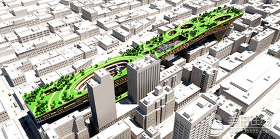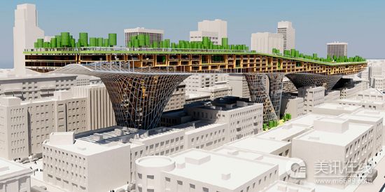 在2010年Evolo雜志舉辦的摩天大廈設計競賽中,俄羅斯建筑師Ayrat Khusnutdinov的參賽作品是“天空之桌”設計方案獲得了特殊榮譽獎。 “天空之桌”和美國的移民制度有著很大的關系。由于社會地位的問題,很多到美國的新移民不能很好地參與社交活動,或與別人分享!疤炜罩馈笔窍M軌蚪ㄔ煲粔K供美國移民使用的社交場地,讓他們能在這里交流分享。 大廈有兩個承重結(jié)構(gòu),第一個在地面上,第二個在空中。大廈的主體則位于兩者之間,大廈主體是由很多靈活的小房間連接在一起而組成。 “天空之桌”大廈內(nèi)設有平價住宅、辦公室、商業(yè)區(qū)、垂直電梯和樓梯,而公共場所位于小房間之間或者建筑平臺之上。