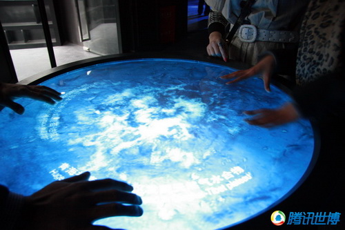“生活街市”展廳內還有許多這樣的狀若水池的屏幕。