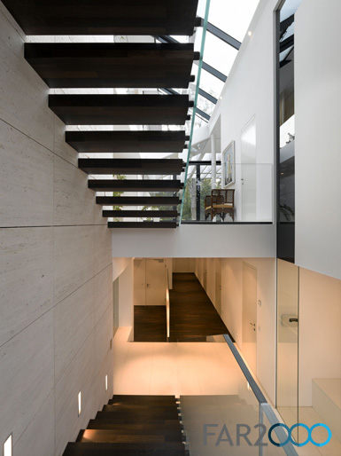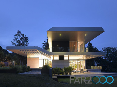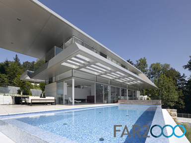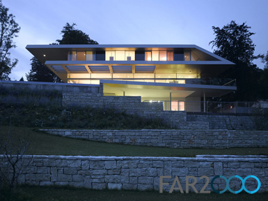 “別墅A”坐落在奧地利Poestling Berg冰山的斜坡上。這座冰山俯瞰著奧地利的林茨市(Linz)。別墅的主入口用懸臂屋頂結構覆蓋,靠近街道的一邊立面用天然石料封閉,而在另一邊立面則采用了全開放式的全景視野,以便讓住戶看到無遮擋地城市景觀。