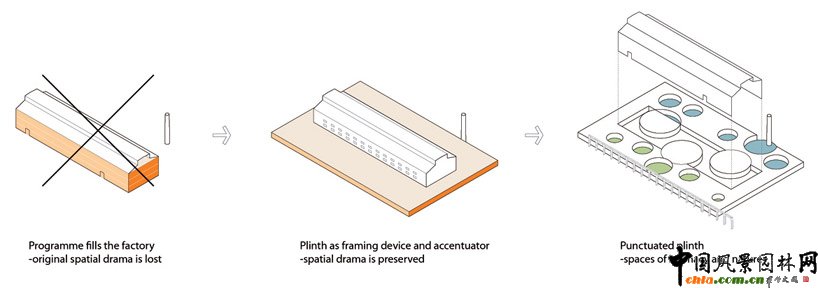 該項(xiàng)目是杭州新天地的核心區(qū)建筑,是一個(gè)活化再利用項(xiàng)目,Serie Architects翻新杭州四個(gè)工廠形為城市中心區(qū)的新核心。對(duì)于Serie Architects的工廠,該公司決定保留工廠獨(dú)特的16英尺高的大廳,并通過(guò)恢復(fù)混凝土桁架屋頂結(jié)構(gòu)以及通過(guò)新釉面燈籠帶來(lái)額外的光線,突出龐大工業(yè)空間生動(dòng)有活力。在現(xiàn)有條件下,該設(shè)計(jì)作為新的方案位于一個(gè)大平臺(tái),尊重歷史的工廠存在。 ![]() ![]() ![]() 由于大廳主要空間的保留,額外的項(xiàng)目圍繞工廠安排,從某種意義上來(lái)其作為一個(gè)基座。底座旨在服務(wù)圈點(diǎn)廠,作為總體規(guī)劃的錨。底座的表面是一個(gè)起伏的風(fēng)景,擁有分散的綠色庭院和水體。 ![]() ![]() ![]() ![]() ![]() 首期開(kāi)發(fā)的核心區(qū)為工業(yè)遺存廠房改造項(xiàng)目,占地面積約100畝,地上建筑面積6萬(wàn)平方米,由尼古拉斯.格雷姆.肖等國(guó)際大師主持設(shè)計(jì),將于2011年開(kāi)工。后續(xù)的12萬(wàn)平方米大型商業(yè)、40萬(wàn)平方米高端寫(xiě)字樓、6萬(wàn)平方米星級(jí)酒店及45萬(wàn)平方米SOHO項(xiàng)目也將陸續(xù)啟動(dòng)設(shè)計(jì)。 (注:文字翻譯來(lái)自華創(chuàng)新天建筑設(shè)計(jì),圖片均來(lái)源與網(wǎng)絡(luò))