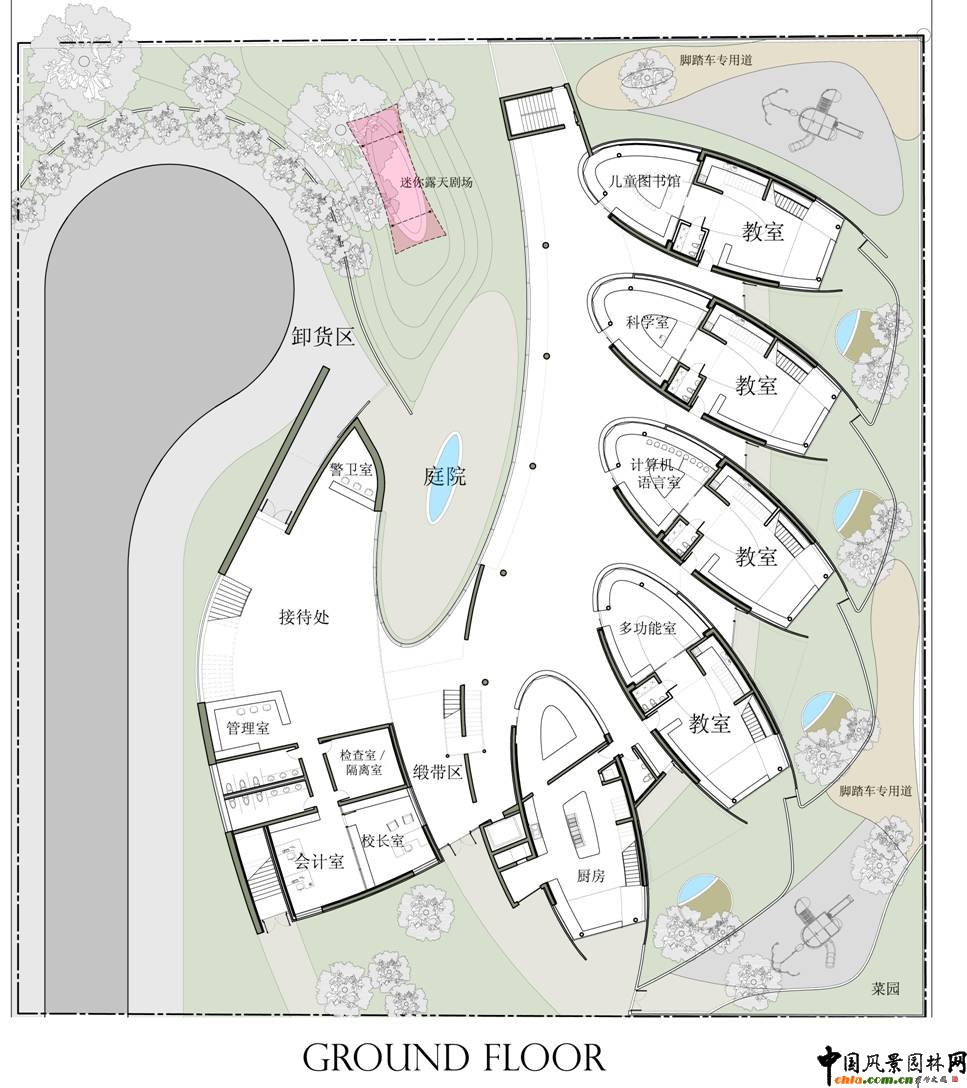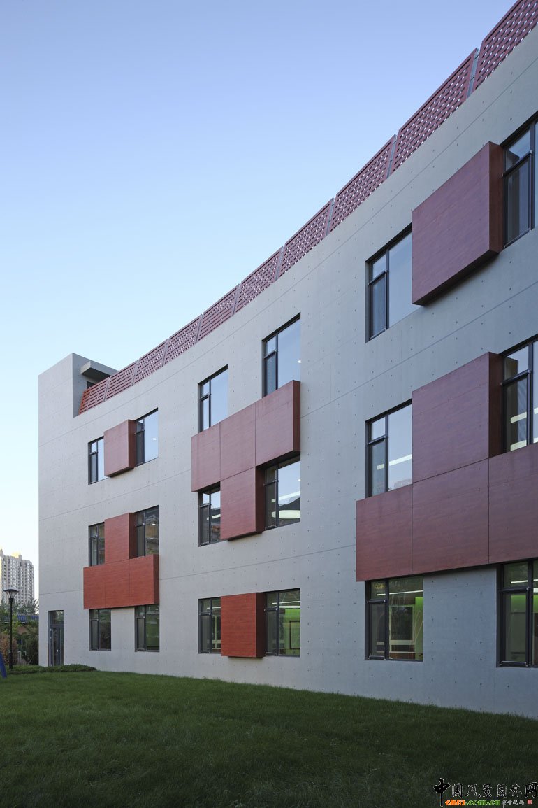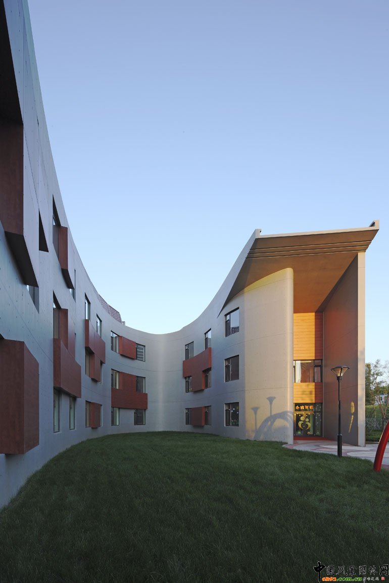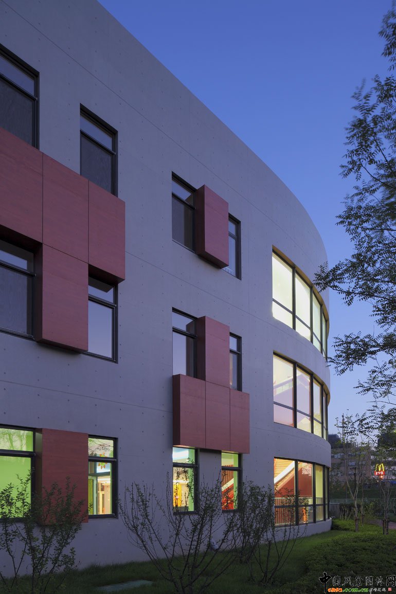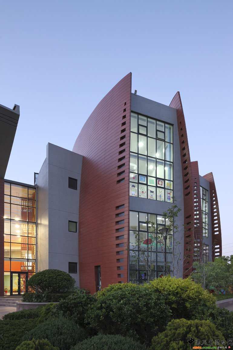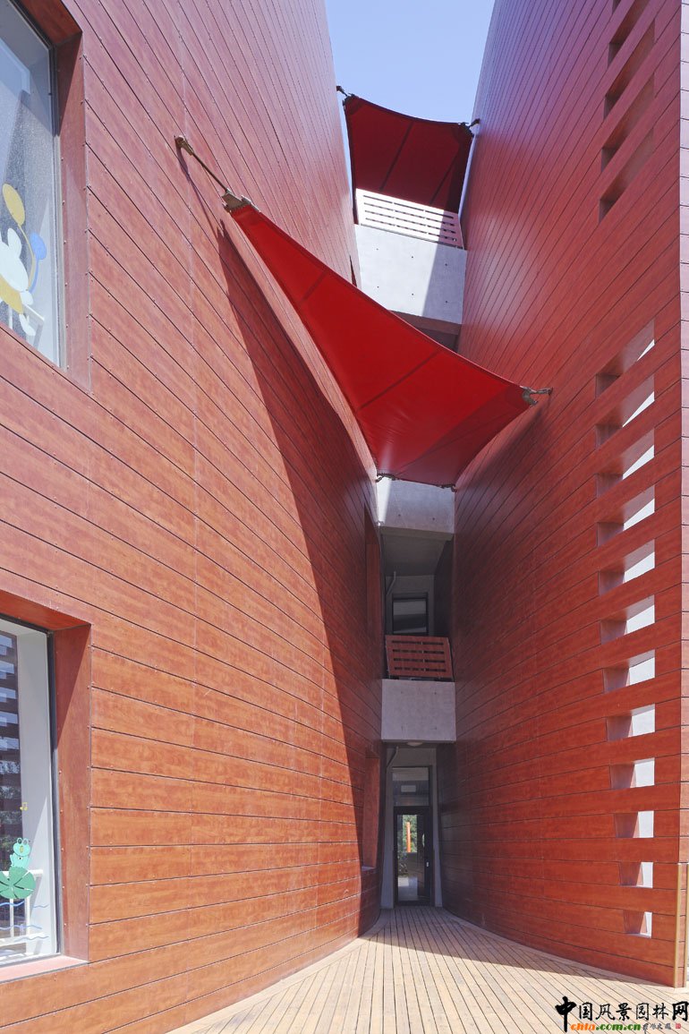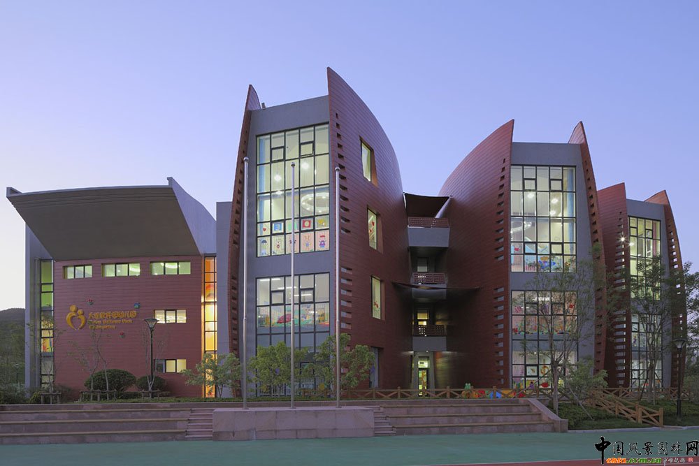 中國風景園林網訊 遠遠看去,大連軟件園幼兒園像生長于同一根系的五枚豆莢,這座由美國著名建筑學府“伯克萊大學建筑學院”教授查爾斯先生設計的建筑,靈感來自“種子”,嬰幼兒就是一個個顆粒飽滿的種子,幼兒園則是陽光、空氣和土壤,為其破土萌發提供源源不絕地滋養。 建筑設計: Debbas Architecture 這個占地7000多平米的幼兒園只額定容納246名嬰幼兒,是有意維持的低密度。9個專項教室,科學、社會、音樂、美術、體育……幾乎延伸到孩子四肢大腦所能觸及的全域。這在目前絕無僅有,它發揮的作用也相當于9的平方,9的立方,甚至9的n次方。 陳列的教具和戶外設施自然是頂級的、國際化的,但占有最大比重的,還是自制玩具,它們并不比購買的成品更美觀,對孩子的啟發力卻不可估量。小王老師正用紅色紙板裁剪出一只七星瓢蟲,背上每個黑色圓斑處都被挖空,塞進塑料瓶,用以鍛煉孩子們旋瓶蓋的動作,她正在琢磨怎樣能把瓶子更好地固定。 ![]() 大連軟件園幼兒園尚未正式投入運營,但種種跡象可以毫不夸張地判斷,這將是大連市迄今為止最高水準的幼兒園。 ![]() 這座框剪結構的幼兒園共計四層,外立面采用奧地利進口的MAX板,鉚釘全部為德國原裝進口,外墻涂料采用日本“菊水”仿清水混凝土,室內墻面全部采用立邦QB高級環保系列涂料,單體造型采用富美家防火板及生態木、長城板,松木家具清一色可靈活組合,兒童活動及公共區則采用得嘉同質透心的PVC抑菌彈性地板……聽起來也許過于專業,但至少這些配置跟50片裁片的香奈兒粗花呢套裝給消費者的心理暗示一樣——品質保證。 大連軟件園幼兒園的園舍設計極為人性化。在這個色彩斑斕的小人國,建筑不再是單純的鋼筋水泥,你能看到的所有細節,都是軟件園開發公司的億達人,彎下腰為孩子做的事:設計師精心選用33種乳膠漆顏色進行色彩搭配,一至三樓的公共活動區域,一層一種主色系,綠色象征成長、黃色反映活潑、藍色代表思考;色差同樣也是每個班級的識別符號,只是為了視覺舒適,教室內的色彩更加高密度、低純度;墻上電源插座的高度是1.8米,遠在孩子的身高之上;1.2米是感統教室海綿軟包防護的高度,這個數字也應用于美術教室的涂鴉墻,足夠覆蓋了幼兒的伸展空間;所有室內木作門均采取防夾手措施,家具、柜體、樓梯也都做了圓角防護處理;全南向教室的玻璃幕墻與地面面積比大于1:6,擴大采光和兒童視野;公共走廊采用上懸(內倒)建筑外窗,滿足室內通風的同時,避免安全隱患。 這座現代化幼兒園的另一硬件特征是——智能。躍層活動室的玻璃幕墻上安裝了高位開啟窗扇,它和配套窗簾都可電動開啟;中廳及多功能廳的采光頂,遮陽簾也能遙控調節;每個班級配備一整套洗衣機、消毒柜、淋浴間、暖浴快、液晶電視和空氣消毒機;所有兒童活動室、寢室、教室均設置空調系統,并增設輔助電加熱功能,用于供暖臨界期;室內應急照明采用雙電源供電,實現市電與EPS應急電源的自動切換;電腦室引進了一體機,電源均做隱蔽處理;廚房配備了一架小型垂直提升食梯;消防系統采用聯動火災報警自動控制;煤氣監測探頭可控制閥門自動切斷氣源;室內及戶外攝像頭確保監控范圍360度無死角。 這些硬件設施不單純有工藝上的細致,還有從成長需要、教育、安全的角度為孩子考慮的用心。大連軟件園開發有限公司工程總監秦學森曾親自現場主持工作,后續仍派工程師常駐,隨時待命。交接工作當天,“幼兒園功能介紹”和“工程簡介”兩份配有詳細圖解的PPT,同時工工整整遞交到了園長辦公室。