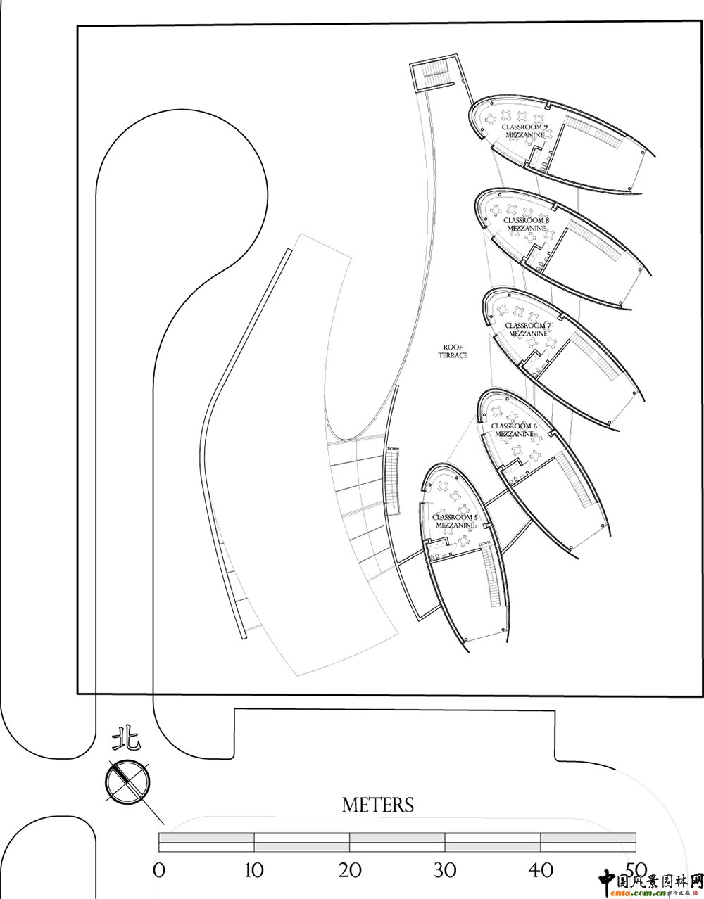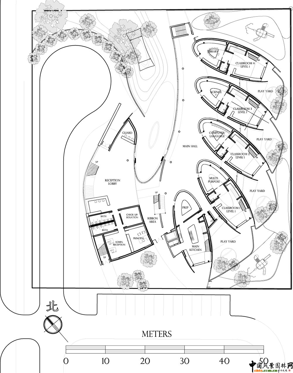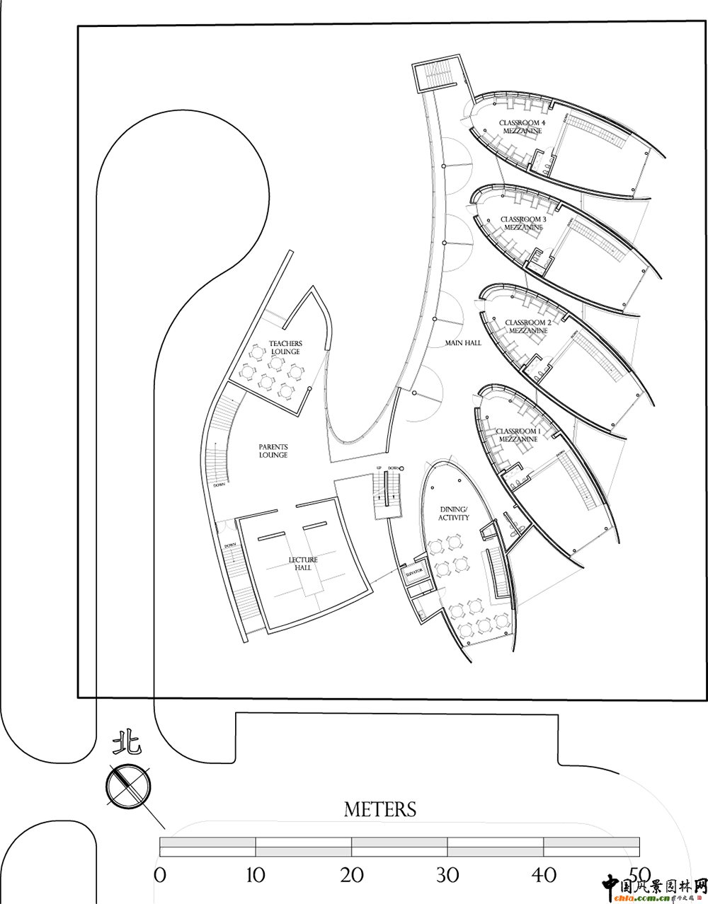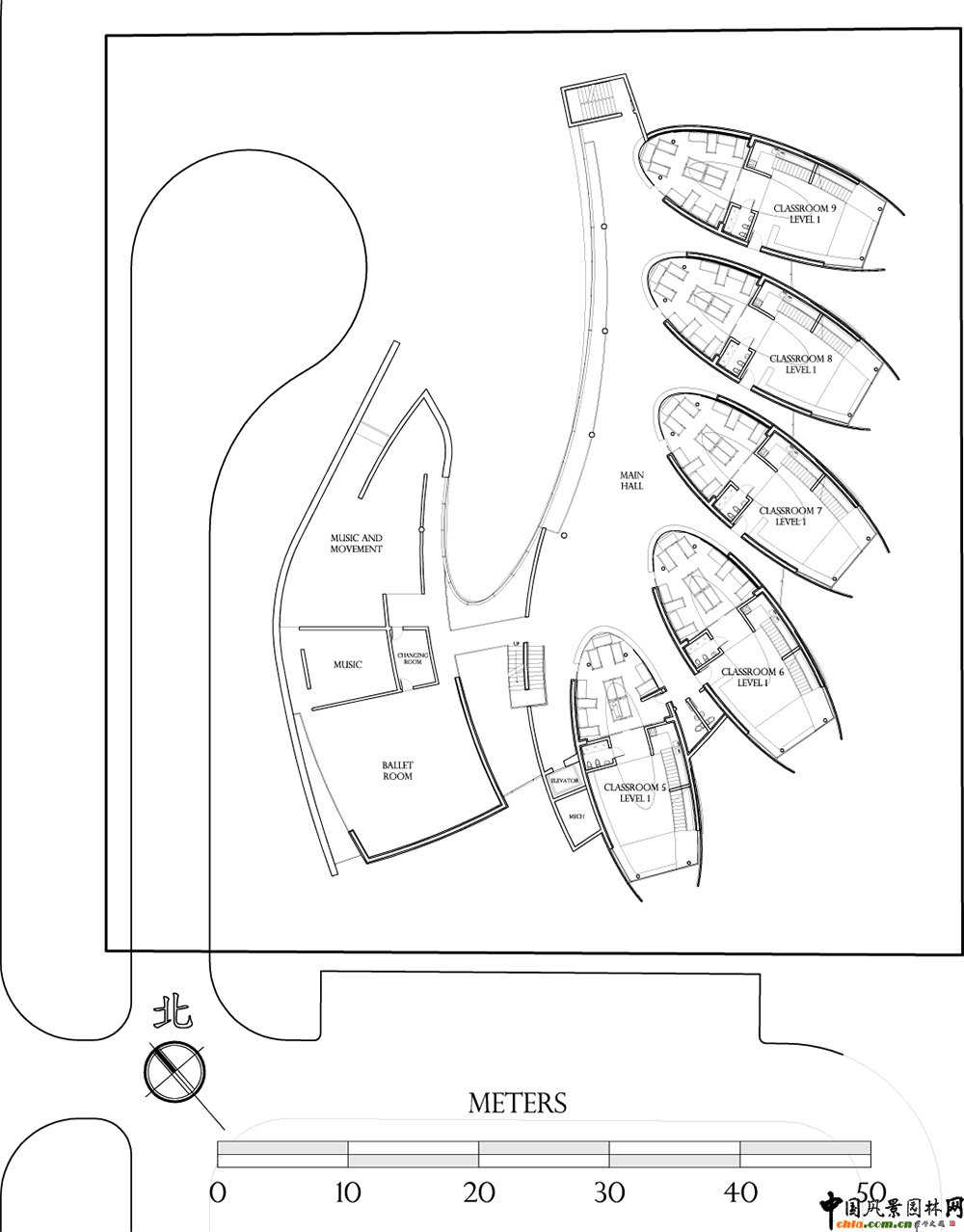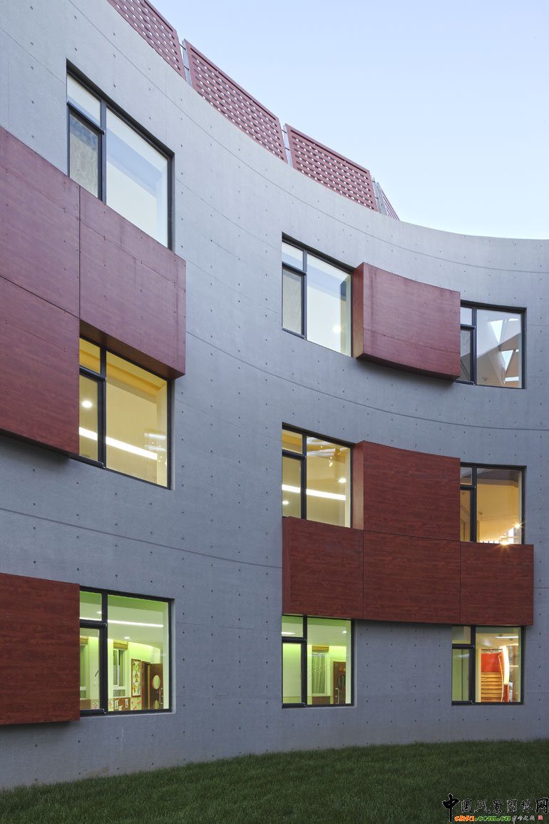 中國風景園林網訊 遠遠看去,大連軟件園幼兒園像生長于同一根系的五枚豆莢,這座由美國著名建筑學府“伯克萊大學建筑學院”教授查爾斯先生設計的建筑,靈感來自“種子”,嬰幼兒就是一個個顆粒飽滿的種子,幼兒園則是陽光、空氣和土壤,為其破土萌發提供源源不絕地滋養。 建筑設計: Debbas Architecture 這個占地7000多平米的幼兒園只額定容納246名嬰幼兒,是有意維持的低密度。9個專項教室,科學、社會、音樂、美術、體育……幾乎延伸到孩子四肢大腦所能觸及的全域。這在目前絕無僅有,它發揮的作用也相當于9的平方,9的立方,甚至9的n次方。 陳列的教具和戶外設施自然是頂級的、國際化的,但占有最大比重的,還是自制玩具,它們并不比購買的成品更美觀,對孩子的啟發力卻不可估量。小王老師正用紅色紙板裁剪出一只七星瓢蟲,背上每個黑色圓斑處都被挖空,塞進塑料瓶,用以鍛煉孩子們旋瓶蓋的動作,她正在琢磨怎樣能把瓶子更好地固定。 ![]() 大連軟件園幼兒園尚未正式投入運營,但種種跡象可以毫不夸張地判斷,這將是大連市迄今為止最高水準的幼兒園。 ![]() 這座框剪結構的幼兒園共計四層,外立面采用奧地利進口的MAX板,鉚釘全部為德國原裝進口,外墻涂料采用日本“菊水”仿清水混凝土,室內墻面全部采用立邦QB高級環保系列涂料,單體造型采用富美家防火板及生態木、長城板,松木家具清一色可靈活組合,兒童活動及公共區則采用得嘉同質透心的PVC抑菌彈性地板……聽起來也許過于專業,但至少這些配置跟50片裁片的香奈兒粗花呢套裝給消費者的心理暗示一樣——品質保證。 大連軟件園幼兒園的園舍設計極為人性化。在這個色彩斑斕的小人國,建筑不再是單純的鋼筋水泥,你能看到的所有細節,都是軟件園開發公司的億達人,彎下腰為孩子做的事:設計師精心選用33種乳膠漆顏色進行色彩搭配,一至三樓的公共活動區域,一層一種主色系,綠色象征成長、黃色反映活潑、藍色代表思考;色差同樣也是每個班級的識別符號,只是為了視覺舒適,教室內的色彩更加高密度、低純度;墻上電源插座的高度是1.8米,遠在孩子的身高之上;1.2米是感統教室海綿軟包防護的高度,這個數字也應用于美術教室的涂鴉墻,足夠覆蓋了幼兒的伸展空間;所有室內木作門均采取防夾手措施,家具、柜體、樓梯也都做了圓角防護處理;全南向教室的玻璃幕墻與地面面積比大于1:6,擴大采光和兒童視野;公共走廊采用上懸(內倒)建筑外窗,滿足室內通風的同時,避免安全隱患。 這座現代化幼兒園的另一硬件特征是——智能。躍層活動室的玻璃幕墻上安裝了高位開啟窗扇,它和配套窗簾都可電動開啟;中廳及多功能廳的采光頂,遮陽簾也能遙控調節;每個班級配備一整套洗衣機、消毒柜、淋浴間、暖浴快、液晶電視和空氣消毒機;所有兒童活動室、寢室、教室均設置空調系統,并增設輔助電加熱功能,用于供暖臨界期;室內應急照明采用雙電源供電,實現市電與EPS應急電源的自動切換;電腦室引進了一體機,電源均做隱蔽處理;廚房配備了一架小型垂直提升食梯;消防系統采用聯動火災報警自動控制;煤氣監測探頭可控制閥門自動切斷氣源;室內及戶外攝像頭確保監控范圍360度無死角。 這些硬件設施不單純有工藝上的細致,還有從成長需要、教育、安全的角度為孩子考慮的用心。大連軟件園開發有限公司工程總監秦學森曾親自現場主持工作,后續仍派工程師常駐,隨時待命。交接工作當天,“幼兒園功能介紹”和“工程簡介”兩份配有詳細圖解的PPT,同時工工整整遞交到了園長辦公室。