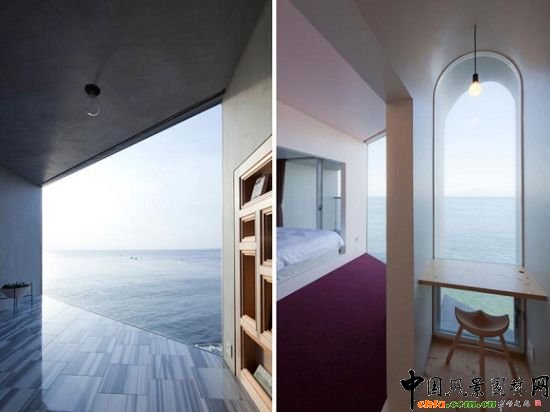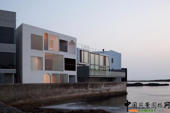 在日本東京附近,有著一套擁有優(yōu)美海景的住宅。從遠(yuǎn)處看它,如同是一幢在海上行駛的“小船”,太平洋將其環(huán)繞,漂浮于海上,讓人沉醉其中。 住宅鏈接海岸的一側(cè)是繁華的鬧市,而另一側(cè)便是幽靜的大海。 住宅似乎將整個太平洋的美景都收入其中。 外體材質(zhì)選用了水泥,給人一種整體的堅固感。不同造型的窗戶則為觀賞者提供了一個別樣的觀賞效果。 住宅包含了一個客廳,一間廚房,兩間臥室,一個衛(wèi)生間和一個大露臺。 就算躺在巨大得浴缸里,也不會錯過戶外得海景。 巨大的玻璃窗必將成為住宅的主體。 在此處停滯一周,將是對心靈與心情的完美凈化。 窗戶上的窗簾是為了增加住宅的整體私密性而量身定做的。 每一個對這大海的開口都是經(jīng)過精心設(shè)計的,其基礎(chǔ)理念是為了更好地吸收戶外景色。