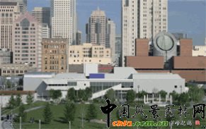 4、楨文彥設計的舊金山“芳草地藝術中心”(Yerba Buena Center for the Arts)。 楨文彥于1993年獲得建筑界的最高榮譽“普利茲克建筑獎”(Pritzker Architecture Prize)。 楨文彥與美國中西部的聯系,包括于上個世紀五十年代在密歇根州西爾斯(Bloomfield Hills)的“克蘭布魯克藝術學院”學習和在圣路易的華盛頓大學(Washington University)任教。并在那兒完成了他的第一個設計項目——一個藝術中心。